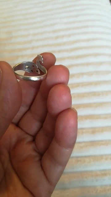 Восторг! Дошло очень быстро, как заявлено (платная доставка была взята). Проба s925, медь, размер примерно 17, на указательный палец , левой руки, на середину , свободно, самое то для вязания. Подходит под стандартную пряжу, под плюшевую естественно уже нет. Очень рекомендую и буду заказывать у этого продавца ещё и ещё!