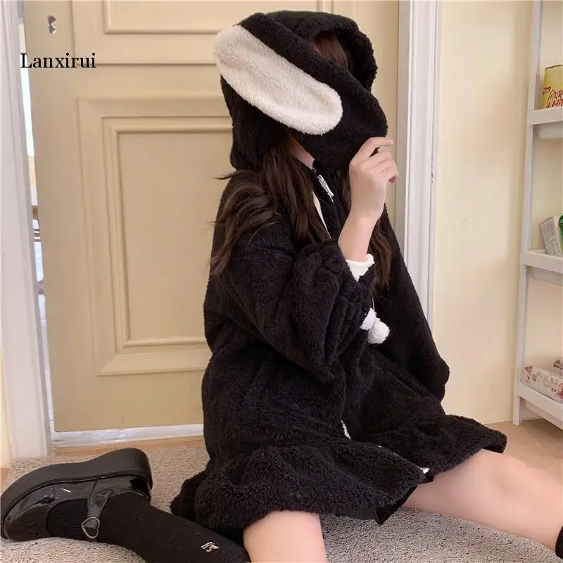 Куртка женская на молнии, с капюшоном и кроличьими ушками