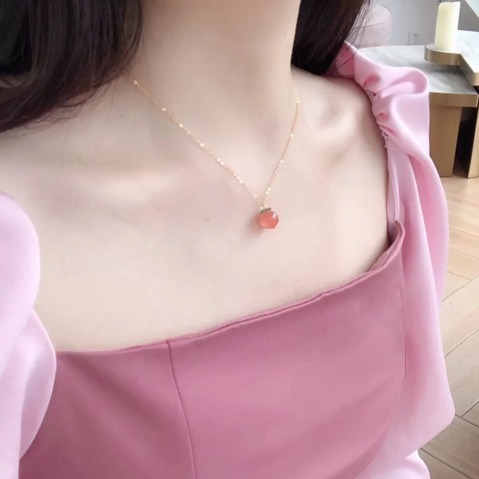 2020 женское ожерелье из сочного персика, модная Милая цепочка до ключиц, персиковая Бриллиантовая бижутерия Для Подружек