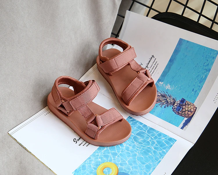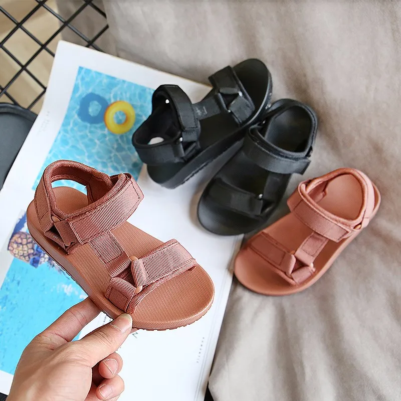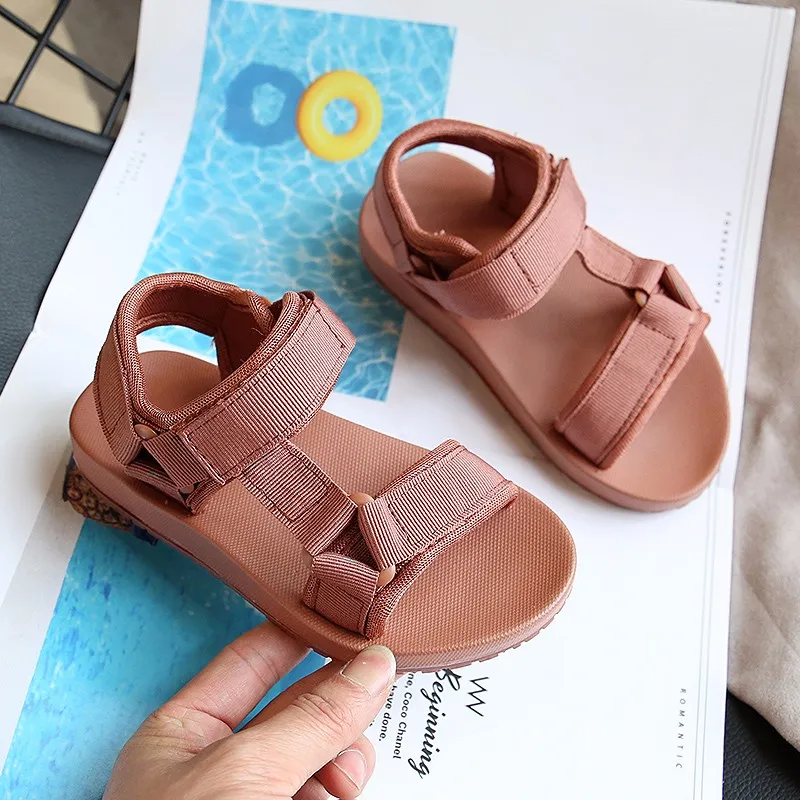 Летние сандалии для девочек ULKNN 2021, детская весенняя обувь, повседневная спортивная обувь для мальчиков, детские мягкие однотонные сандалии на плоской подошве