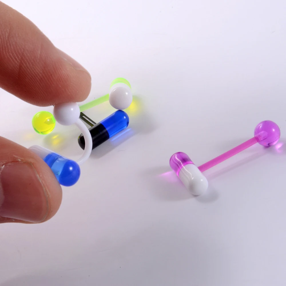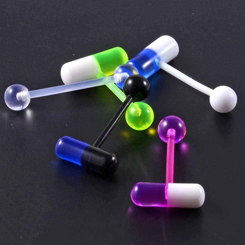 5 шт. акриловые капсулы штанга для языка кольца таблетки язык кольцо пирсинг прозрачный акриловый шарик Базовая кольцо для языка ювелирные изделия 14 г