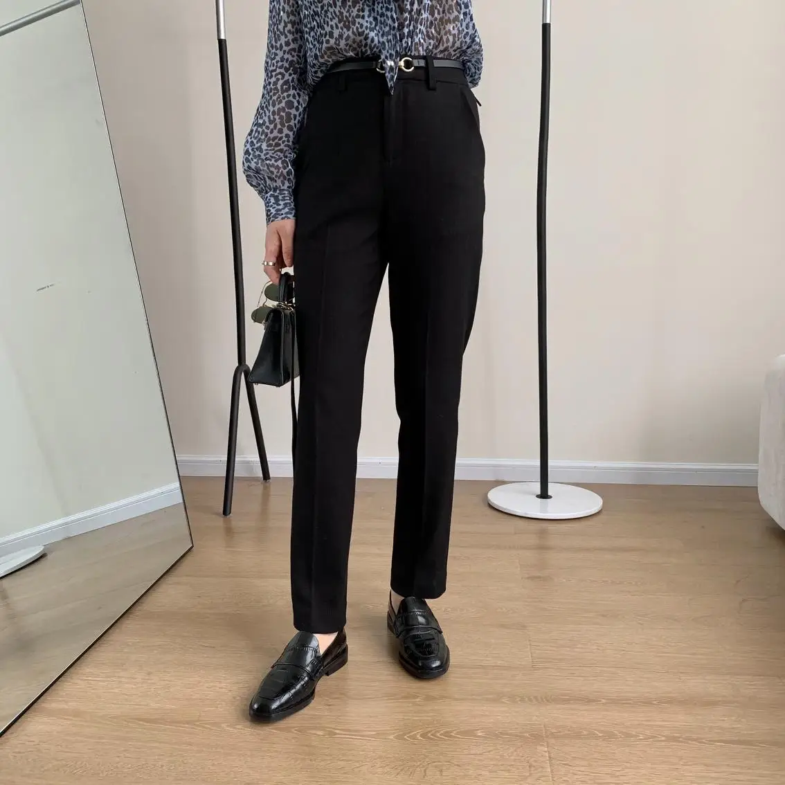 Брюки женские прямые с завышенной талией, офисный однотонный костюм с карманами, брюки-султанки до щиколотки на молнии, весна-осень