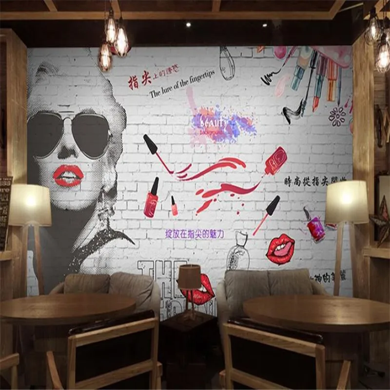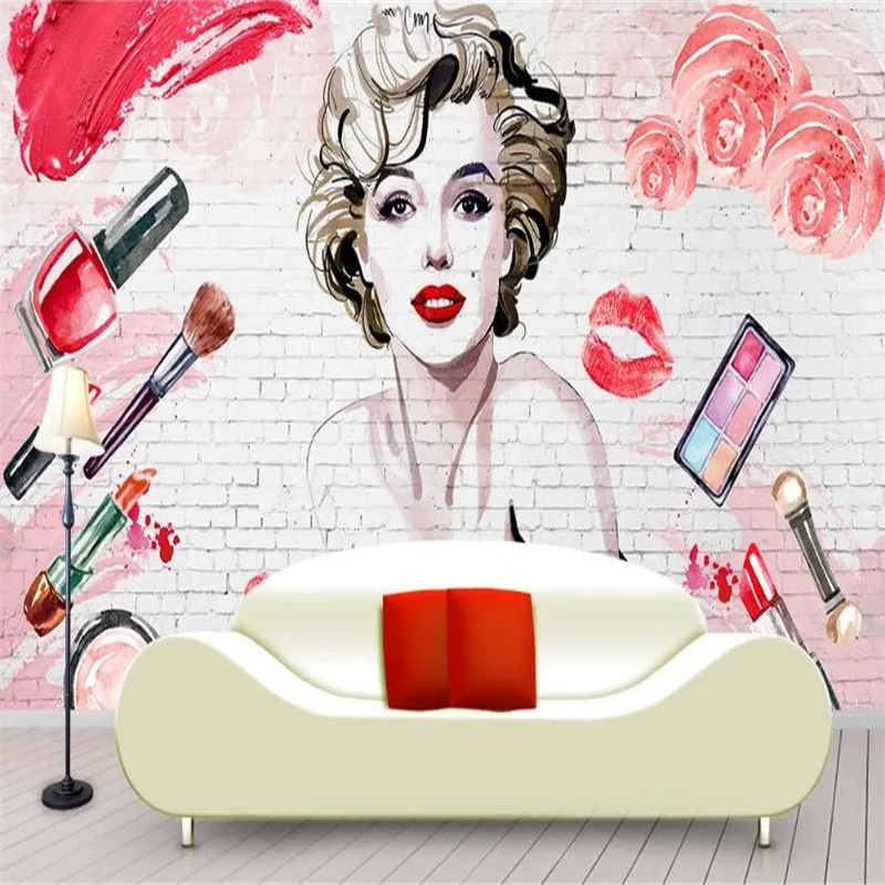 Европейская и американская Косметика Монро кирпичная настенная бумага 3D маникюрный салон макияж Магазин промышленный Декор Фон настенная бумага 3D