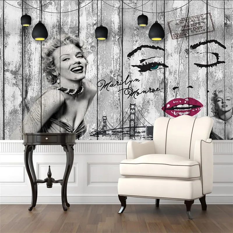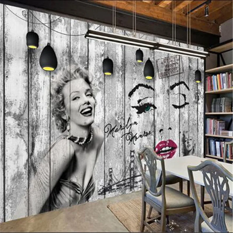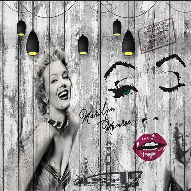 Ретро Мэрилин Монро настенная бумага 3D Кафе Ресторан Бар промышленное украшение фон роспись настенная бумага 3d Papel De Parede 3D