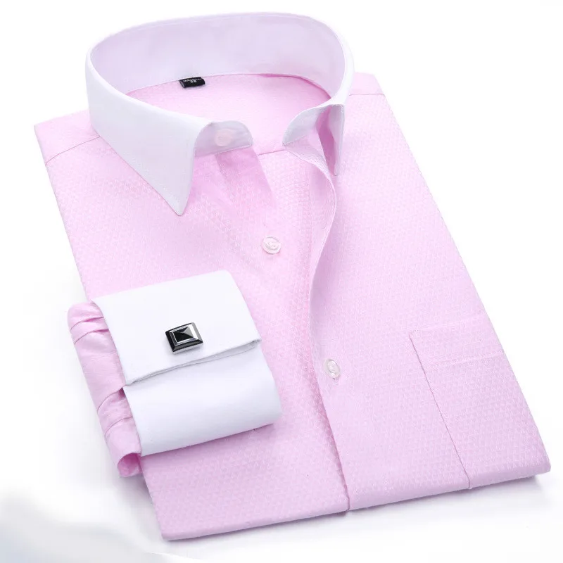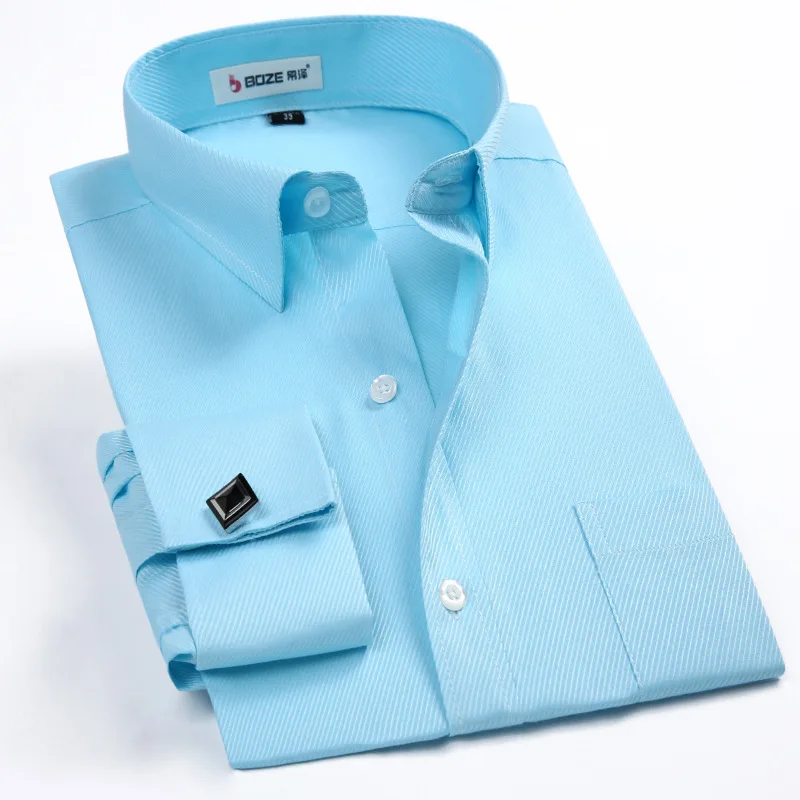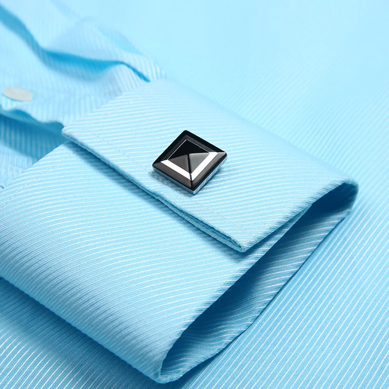 Мужская рубашка на пуговицах, с длинным рукавом, в полоску, с французскими запонками