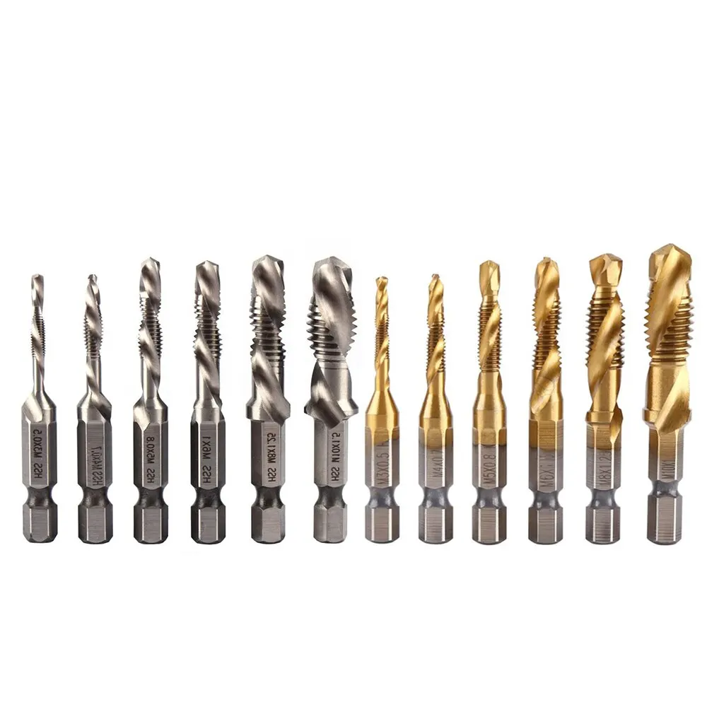 Сверло бит шестнадцатеричный Хвостовик с титановым покрытием, резьба Винт из быстрорежущей стали, метрическое сверло под Метчик бит, винтовая машина составной кран