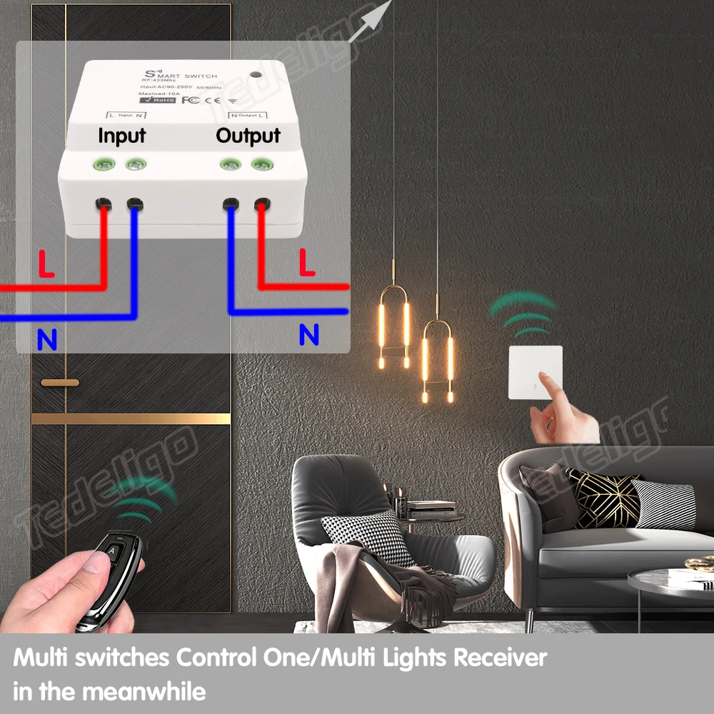 Умный выключатель света, беспроводной кнопочный настенный выключатель, 433 МГц, 220 В, 10 А, приемник, домашние обогреватели, потолочный светильник, светодиодный