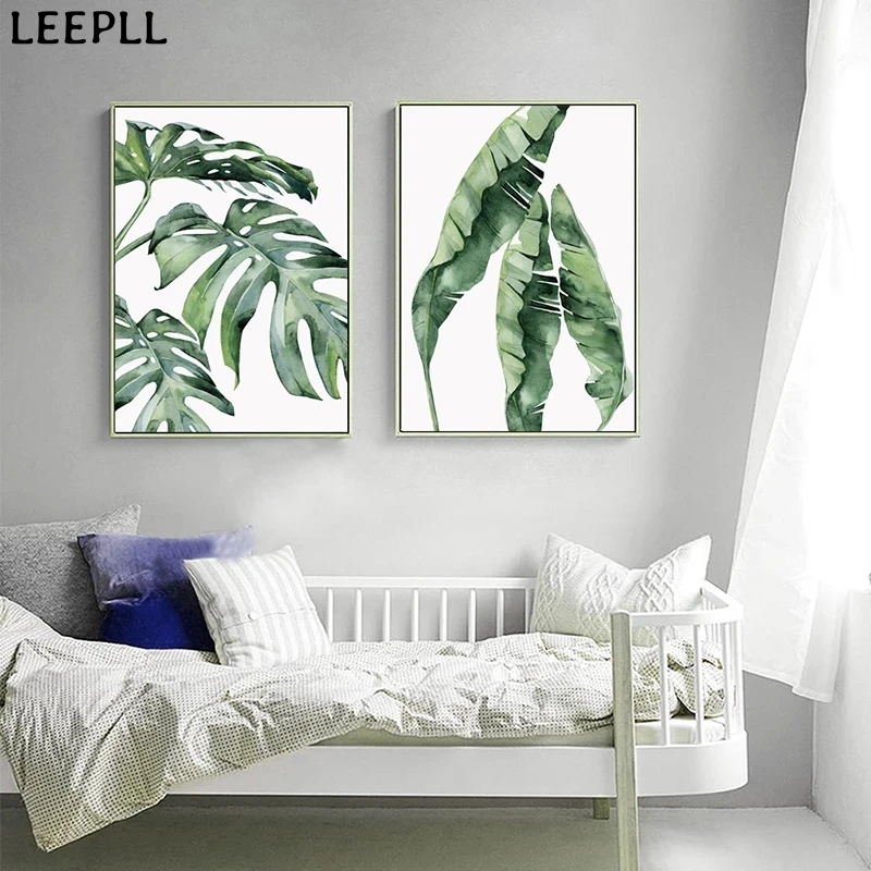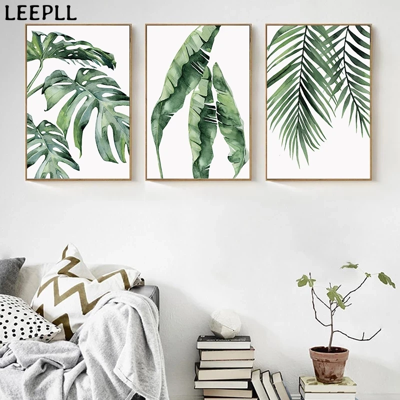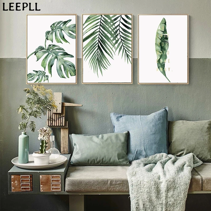 Скандинавский стиль зеленые тропические листья настенная Картина на...