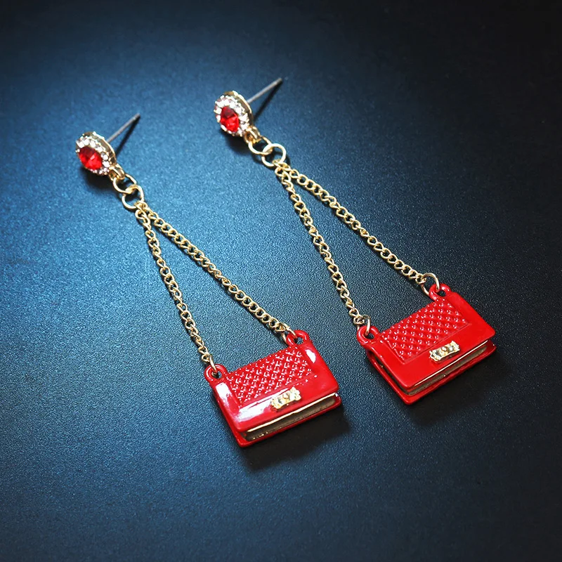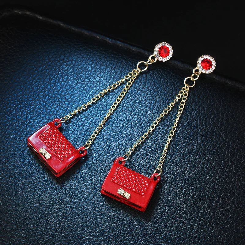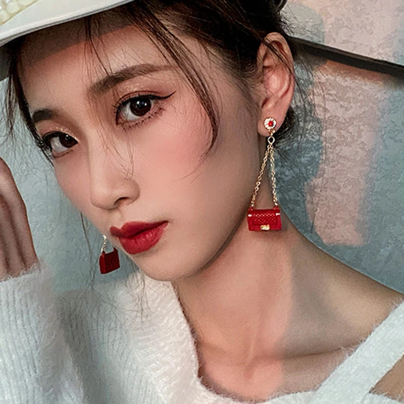 Женские серьги-кисточки с красным мешочком, креативный дизайн, стильные ювелирные украшения для вечерние