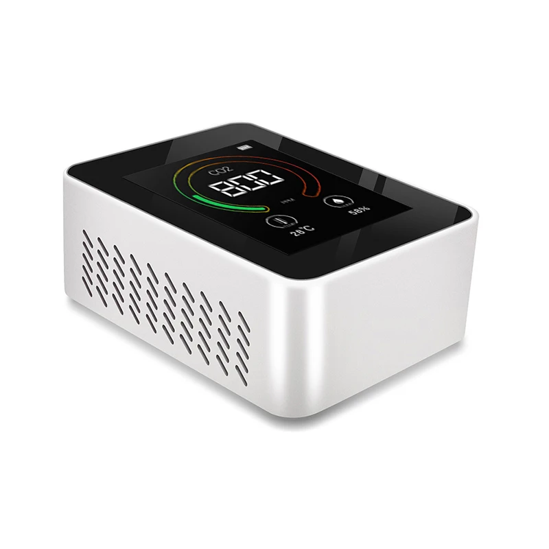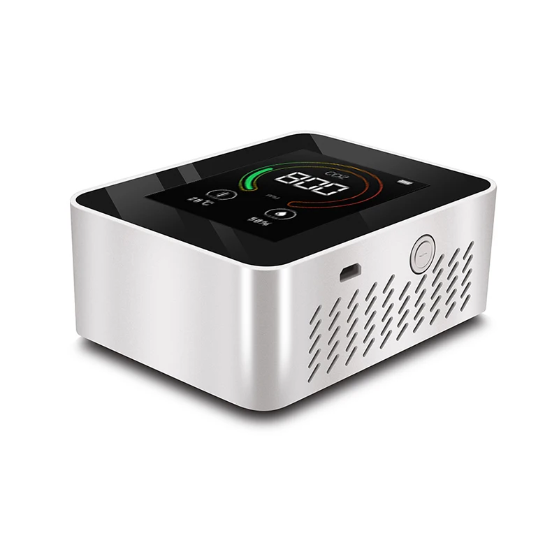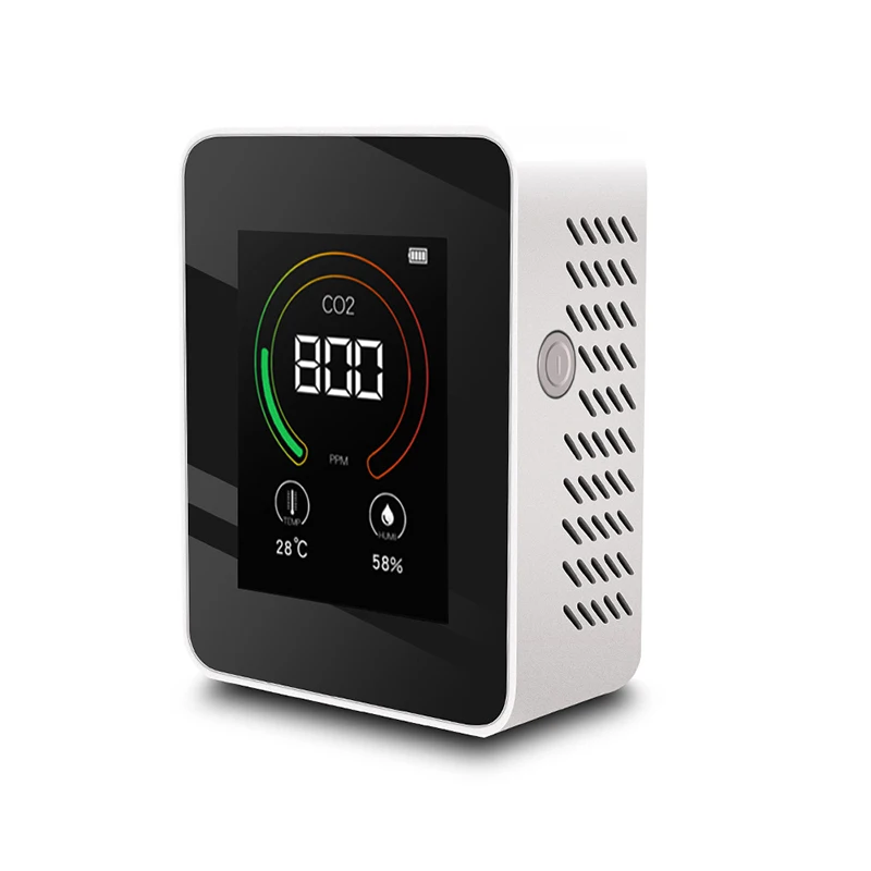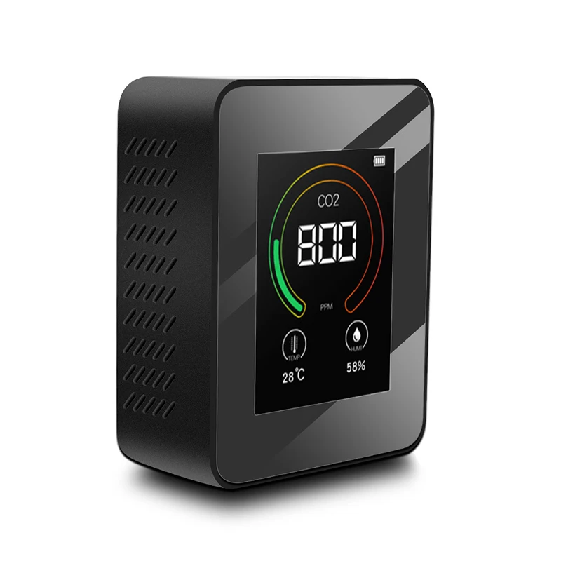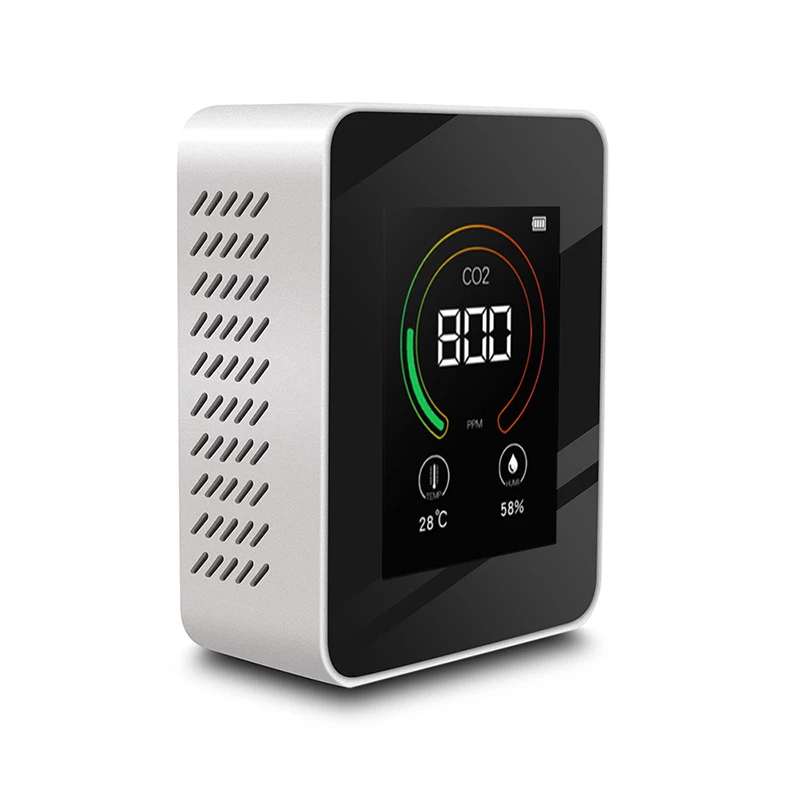 2. Детектор CO2; Он отображает текущие данные о CO2, а также данные о температуре и влажности. В соответствии с количеством содержания CO2, цветовой круг изменится.