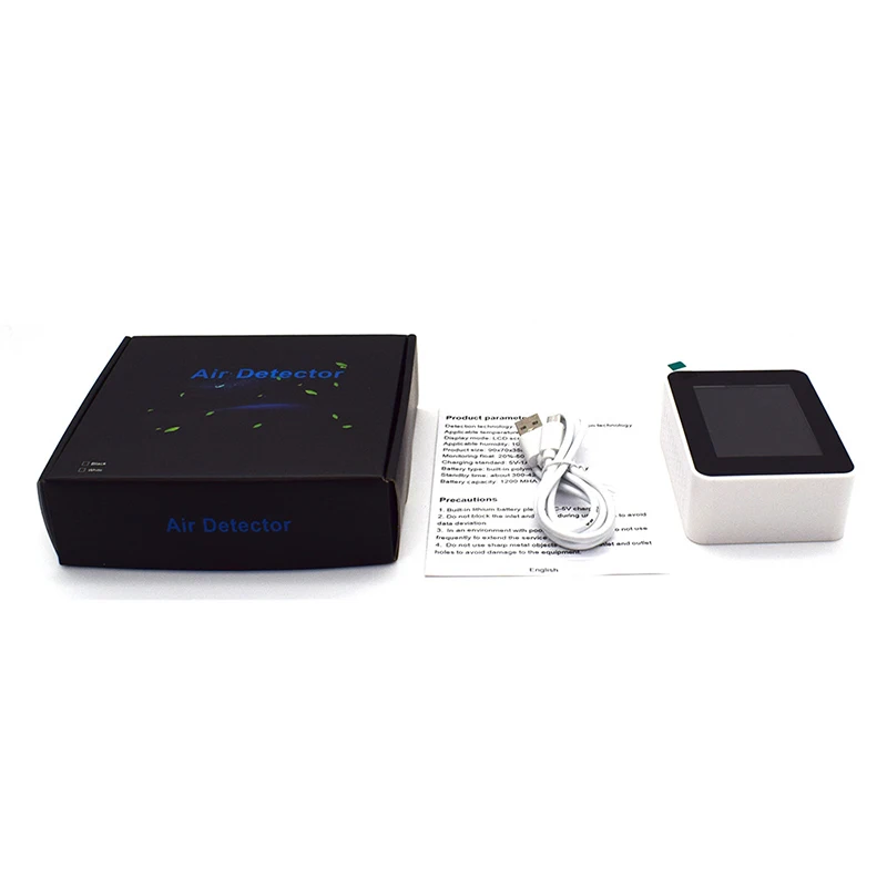 Скажите, что введение продукта после открытия посылка, пожалуйста, подтвердите, находится ли детектор качества воздуха в хорошем состоянии и аксессуары завершены.
