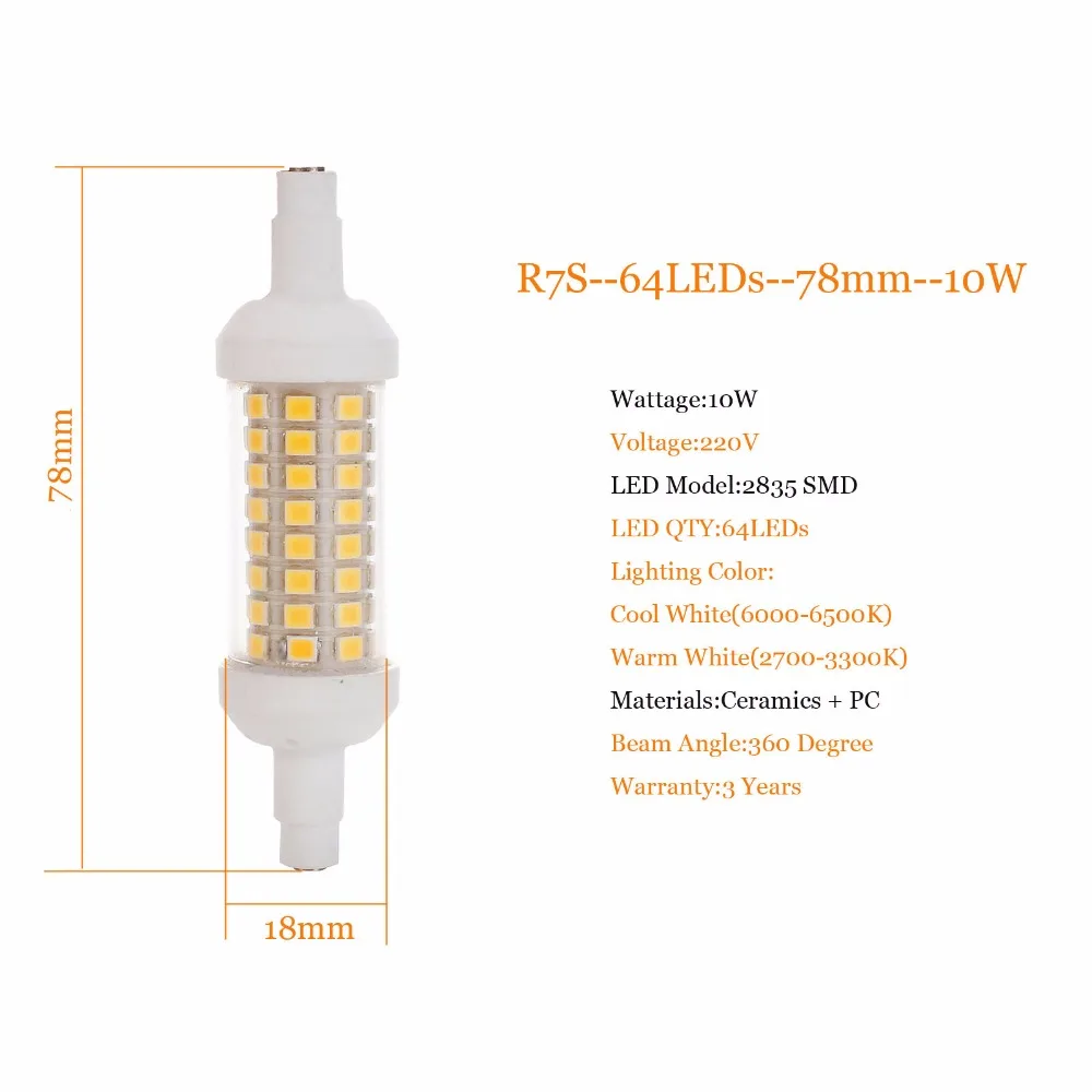 Керамичессветильник Светодиодный прожектор Mini R7s, 10 Вт, 15 Вт, 20 Вт, лампы 220 В, J78, J118, J135, ламсветильник-кукурузы, сменные галогеновые лампы R7s 2835 SMD 78 мм