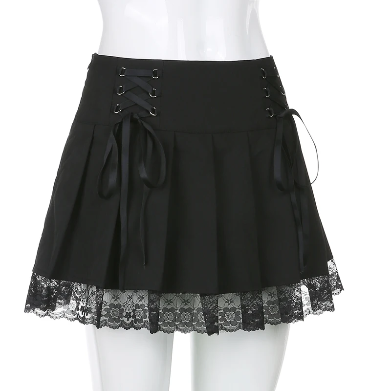 SUCHCUTE розовое кружевное платье в стиле пэчворк 2000s эстетическое; Мини-юбки для девочек; Однотонное женское темно-академия модная женская обувь на шнуровке со складками юбки вечерние клубная одежда