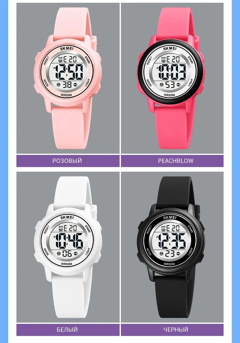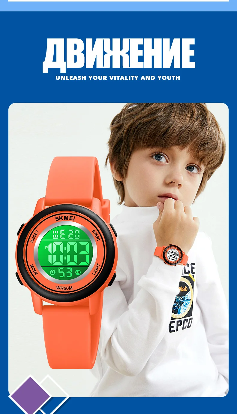 Детские спортивные часы SKMEI, для мальчиков и девочек, яркие светодиодные цифровые наручные часы, водонепроницаемые детские часы с будильником, детские часы 1721