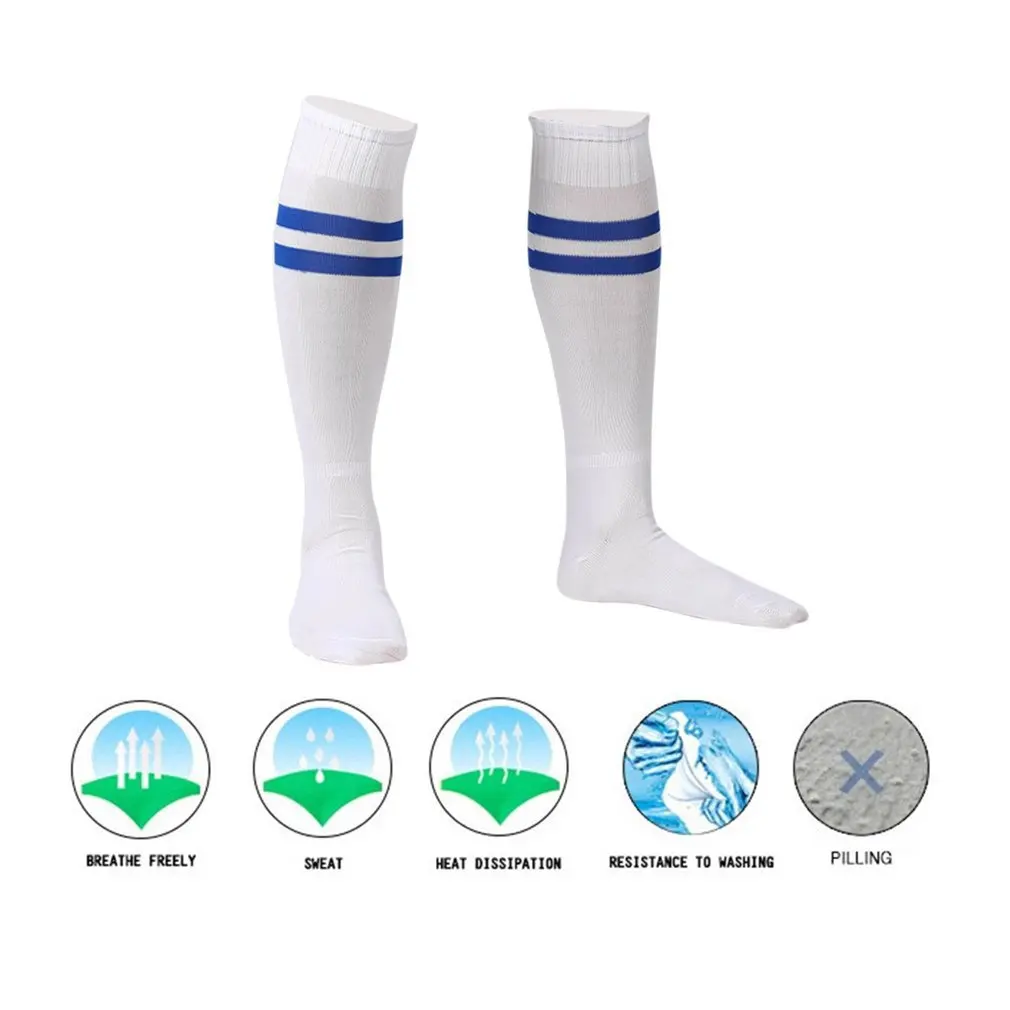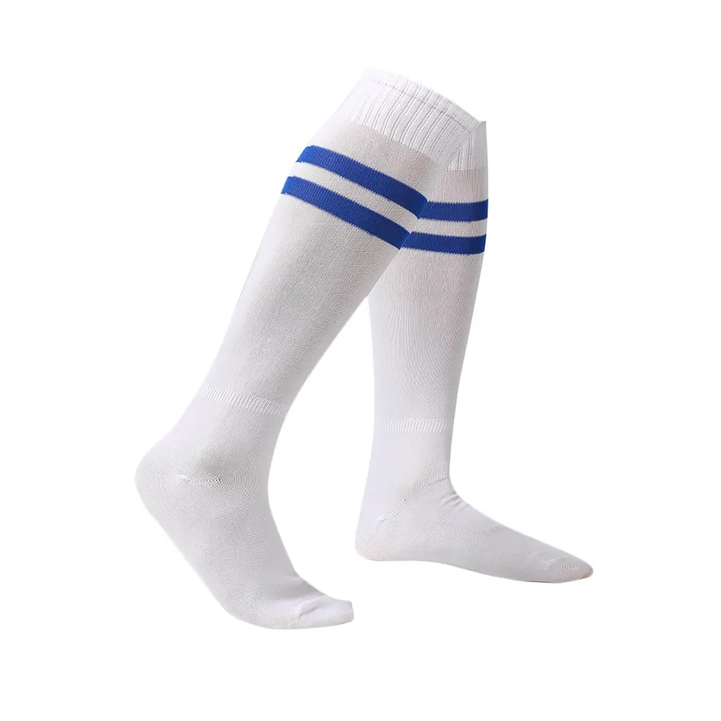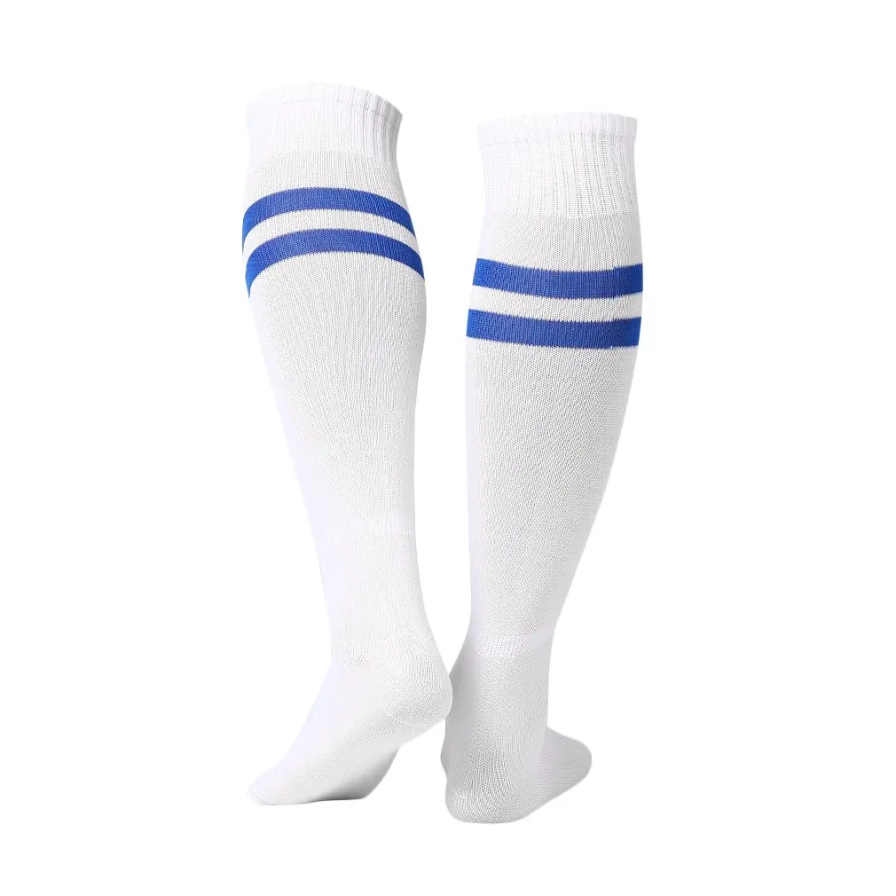 Особенности:Подходит для четырех сезонов.Изготовлен из высококачественного хлопкового материала.Модный и стильный дизайн.Удобные и модные.Изготовлен из хлопка, очень прочный для использования.Описание:Подходит для игры в бейсбол, футбол, баскетбол, спорт.Характеристики:Материал: смесь хлопкаЦвет: черный, синий, желтый, красный, зеленый, белыйДлина: 54 смУзор: в полоскуСтиль: до коленаПосылка включает в себя:2 х футбольные длинные чулки шланги