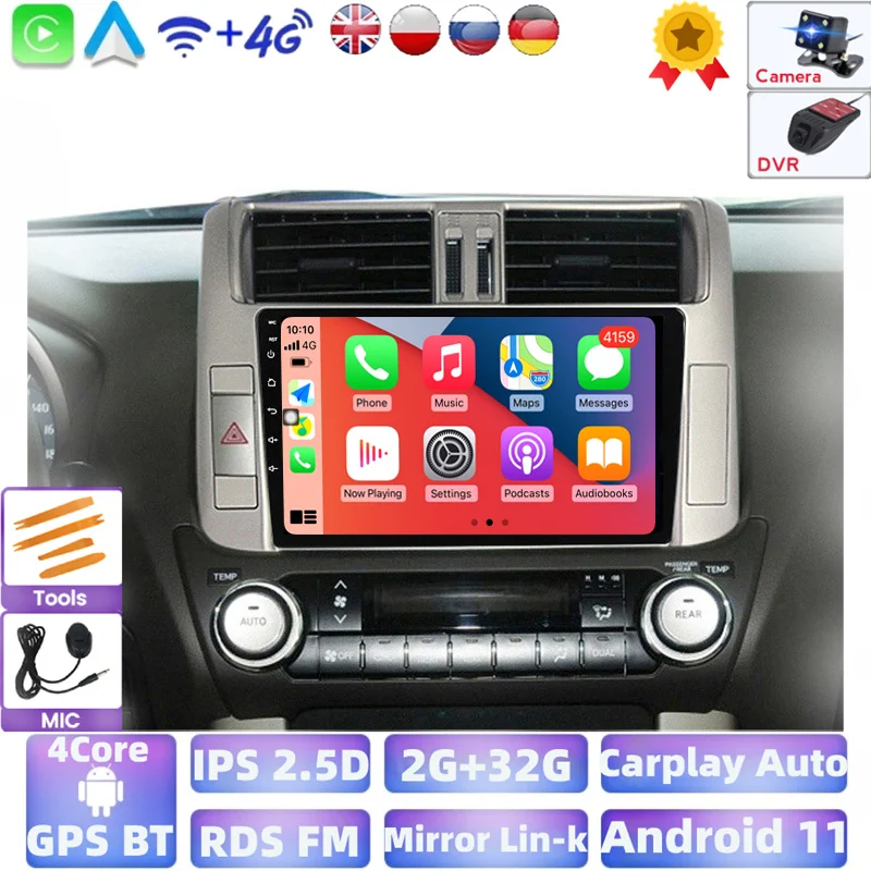 Автомагнитола для Toyota Land Cruiser Prado 150, 2009, 2010, 2011, 2012, 2013, Android, со встроенным динамикомМикрофоном, OBD2, DAB +