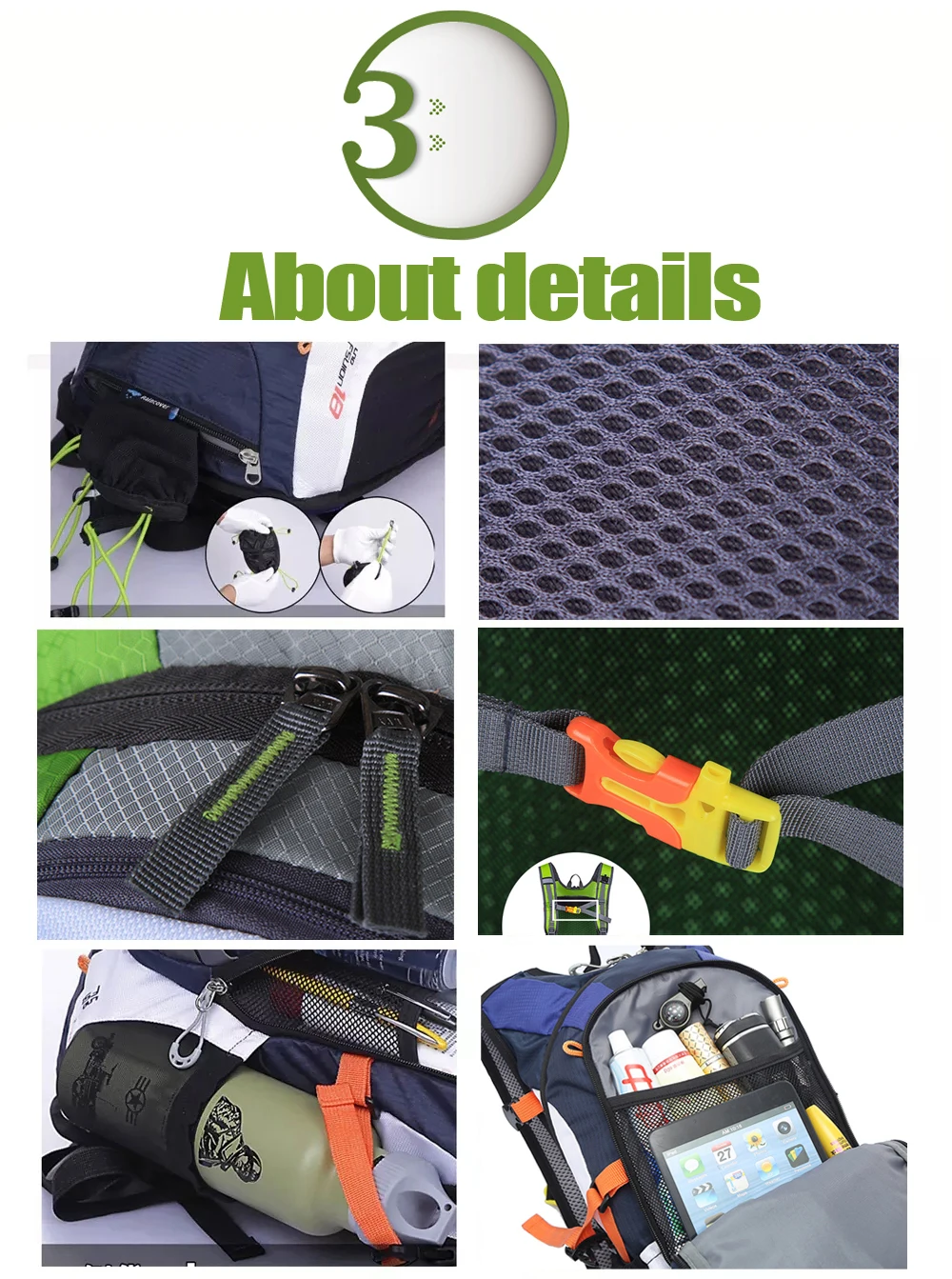 Обширные приложения-водонепроницаемый и прочный рюкзак предназначен для сопровождения вашей поездки по бегу, бегу, марафону, походу, скалолазанию, велоспорту, ходьбе, альпинизму, кемпингу и т. д.