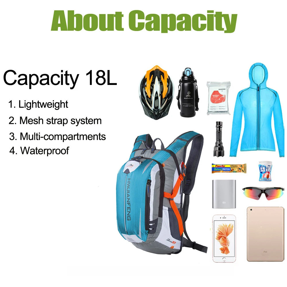 18L спортивный рюкзак, он также предоставляет большую запасную комнату для ваших предметов первой необходимости на открытом воздухе, включая дополнительную одежду, спортивное полотенце, ключ для телефона и т. д. храните вещи в порядке и удобнее.
