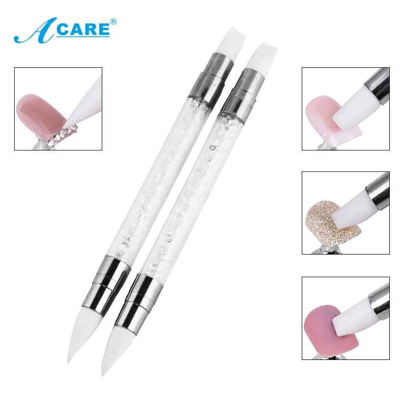 Двусторонняя силиконовая ручка ACARE для дизайна ногтей, 3d-гравировка, блестящая пудра, жидкий маникюр, точечная кисть, инструмент для ногтей