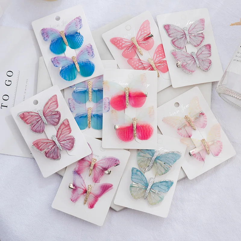 2 шт./компл., новые милые разноцветные заколки-бабочки для женщин и девочек, милые заколки для волос, заколки для волос, модные аксессуары для волос