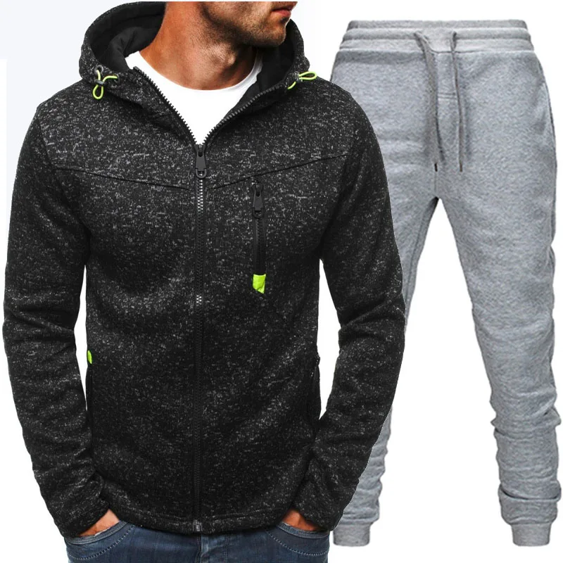 Мужской спортивный костюм, осенне-зимняя толстовка, флисовое пальто с капюшоном, мужские толстовки + штаны, толстовки на молнии, повседневная спортивная одежда, костюм