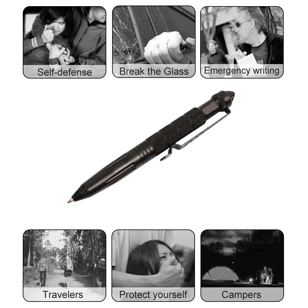 Это тактическая ручка для самозащиты с множеством функций. Поверхность держателя ручки анодирована для повышения сопротивления давлению держателя ручки. Используйте сверхпрочный антикоррозийный авиационный алюминий и встроенную высококачественную металлическую ручку. Его можно использовать для самообороны, разбивания стекла, разбивания окон для выживания. Это также практичный и функциональный инструмент с Заточенной ромбовидной головкой, аварийной записью, ежедневной подписью, легко носить с собой и удобно использовать. Теперь Держите эту ручку с собой и чувствуйте себя в безопасности!