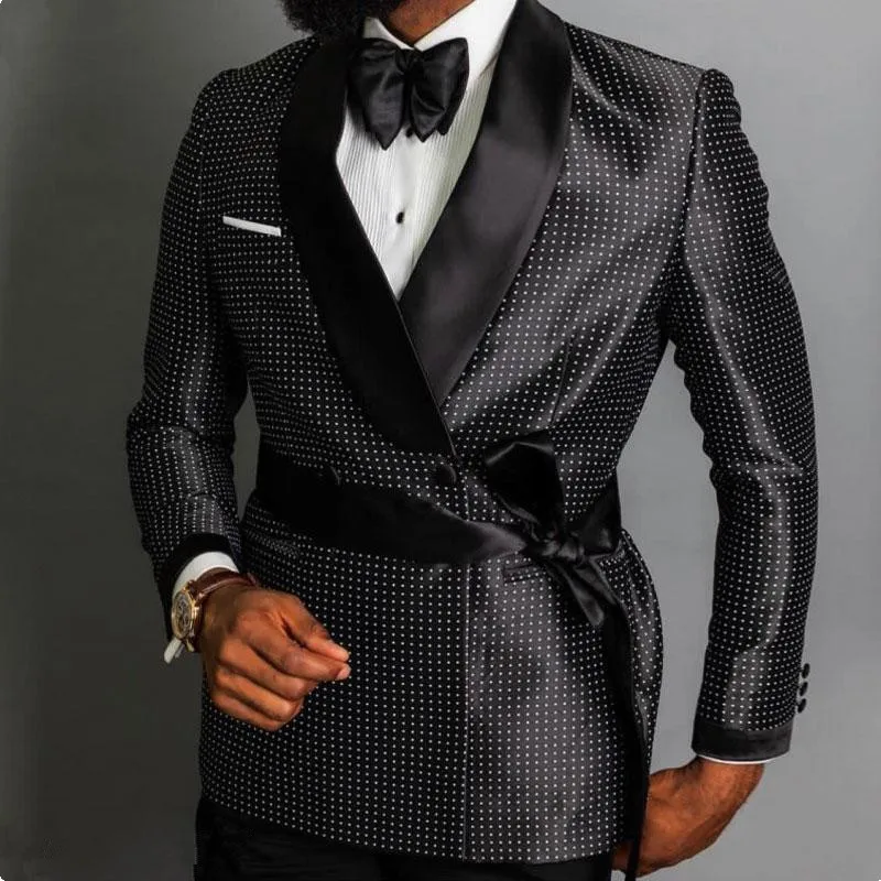 Мужской двубортный костюм в черный горошек, Свадебный облегающий костюм с пиджаком и брюками, 2021