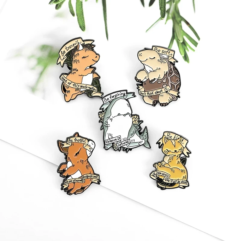 Эмалированные Броши с баннером в виде животных, лошади, осла, черепахи, кота, акулы, застежка глаз и улыбка, Забавный значок, ювелирное изделие, подарки