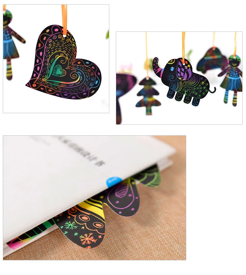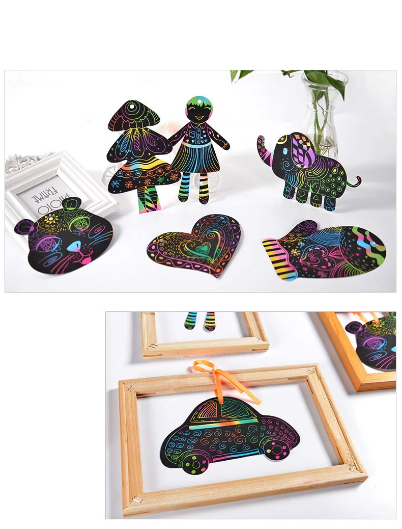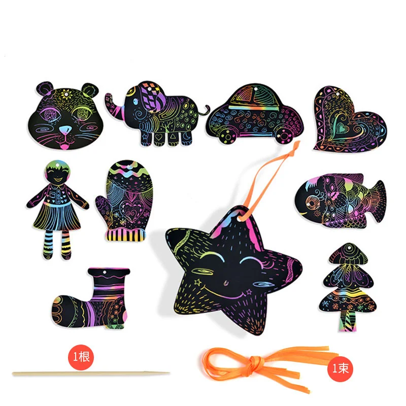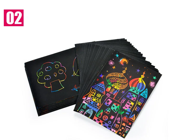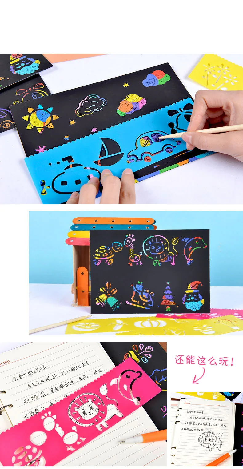 Волшебный Цвет Радуга царапины Арт Набор бумажных карт с трафарет для граффити для рисования палочки DIY художественная живопись игрушка для детей