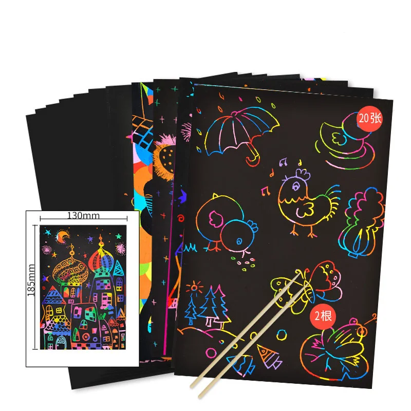 Набор для рисования радужной скретч-бумаги с трафарет для граффити карточками, для самостоятельного рисования, игрушка для детей