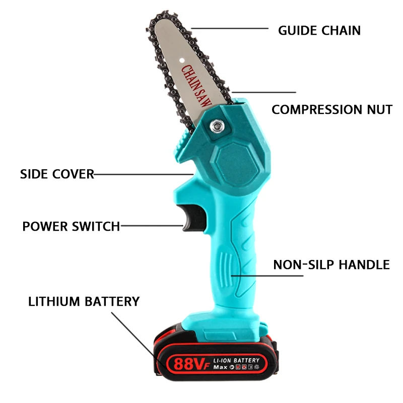 Цепная пила, портативная, аккумуляторная, с литиевым аккумулятором