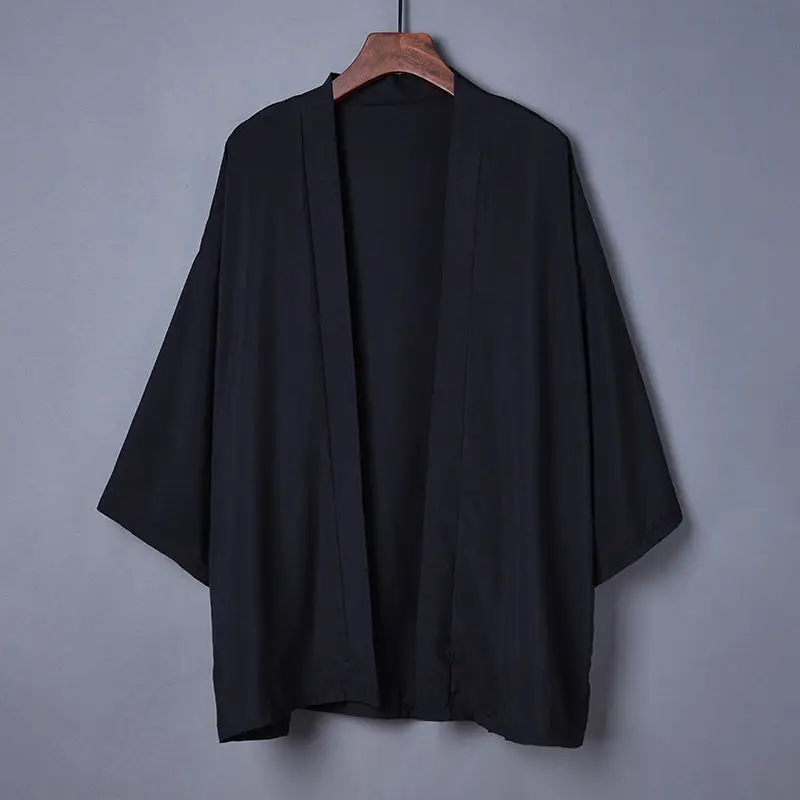 Кимоно для женщин и мужчин черное свободное, юката, винтажная уличная одежда, классические костюмы самурая для косплея, японские кимоно, хаори, кардиган