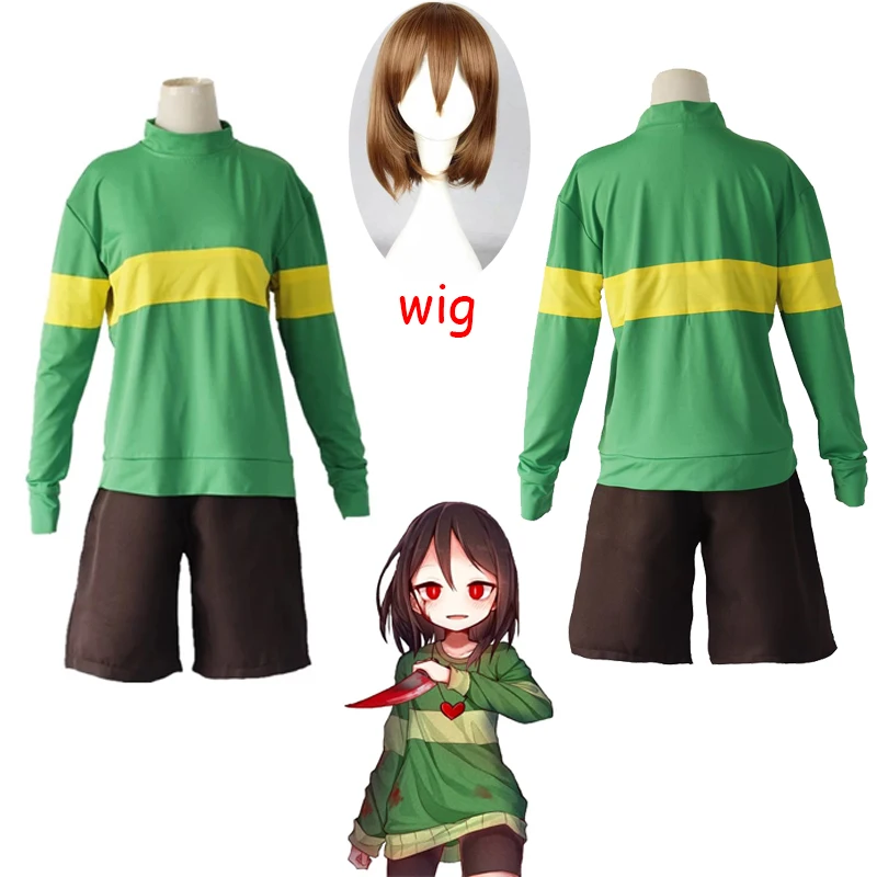 Костюм для косплея из аниме игры Undertale, фриск, Чара, свитшот с высоким воротником и длинным рукавом, шорты, парик