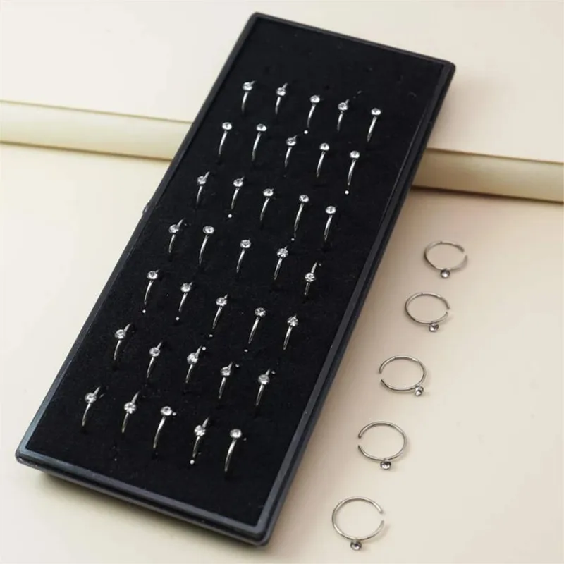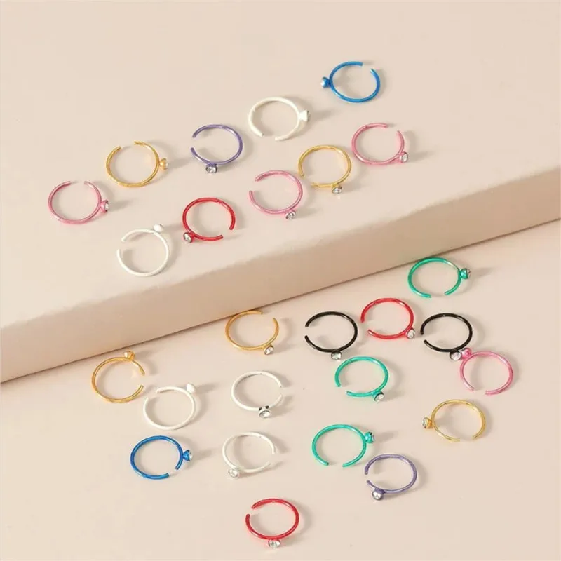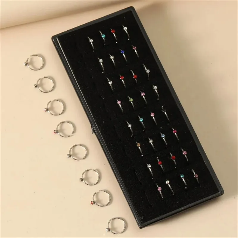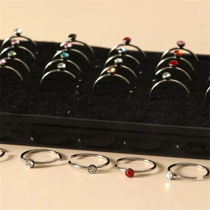 Набор колец для носа из нержавеющей стали с кристаллами, набор колец для прокола носа, 20 г, серьги-кольца для имитации пирсинга, губ, 40 шт.