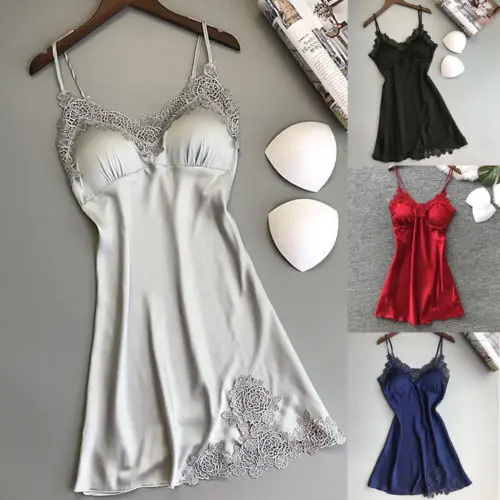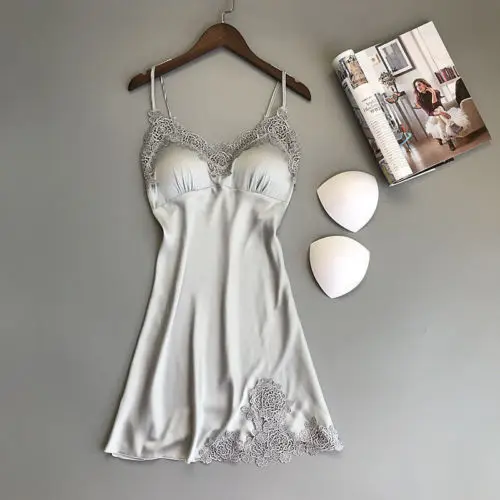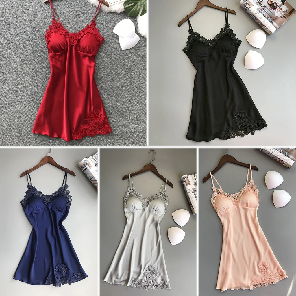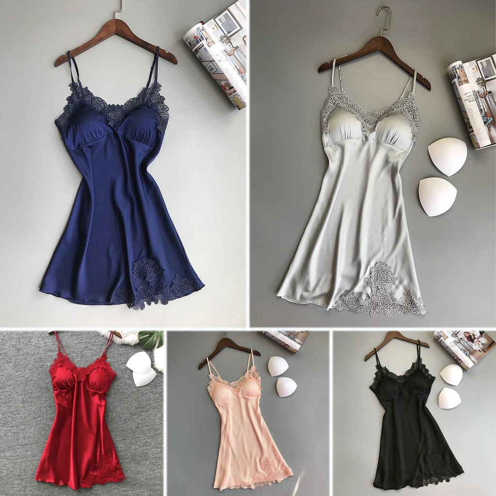 Хит продаж, ночные рубашки с V-образным вырезом, модная повседневная одежда для сна, ночная рубашка, женская одежда для сна, летнее сексуальное кружевное белье, атласное платье для сна