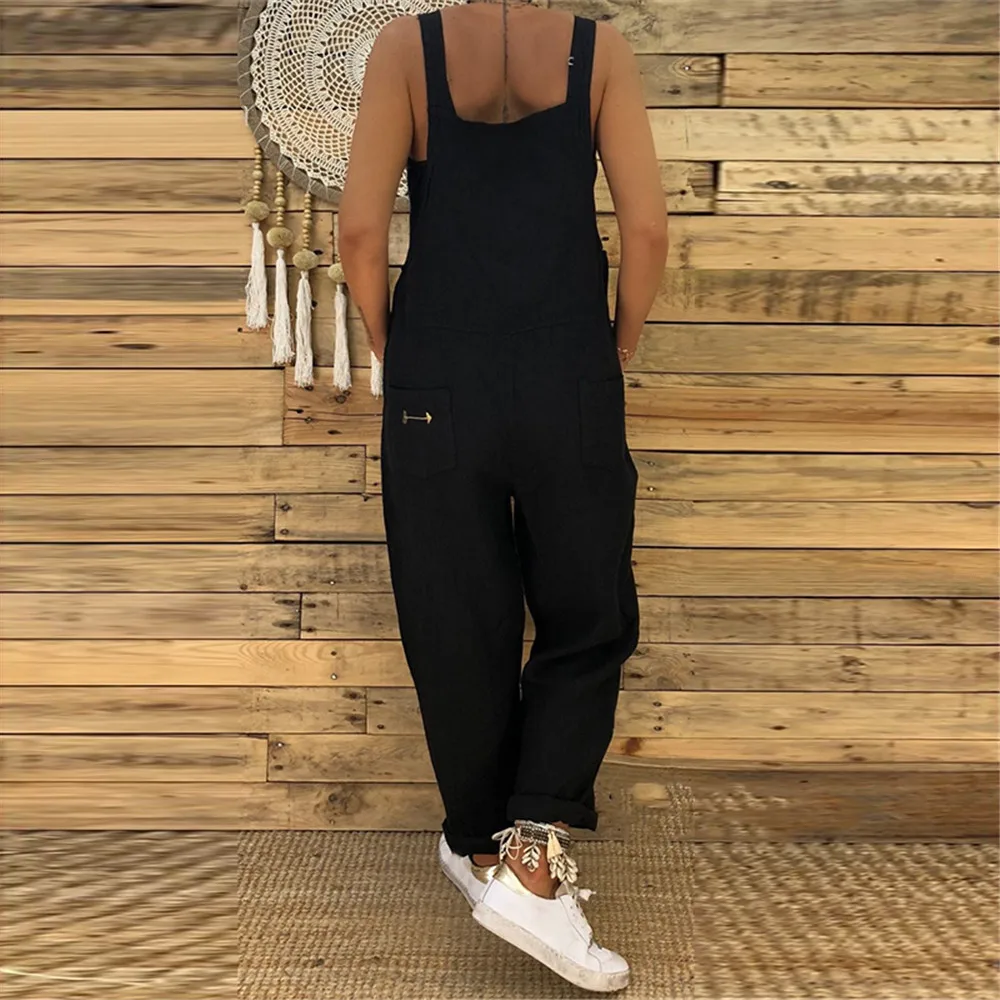 Комбинезон женский на бретелях, повседневный свободный хлопково-льняной Ромпер, длинный ромпер с широкими штанинами и карманами, Ромпер, на лето