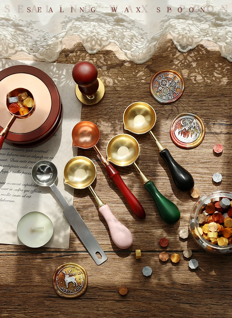 Ложка для печати с деревянной ручкой, инструмент для нагрева воска, сделай сам, свадебная поздравительная открытка, восковая бусина, ложка для печати, нержавеющая модель плавления