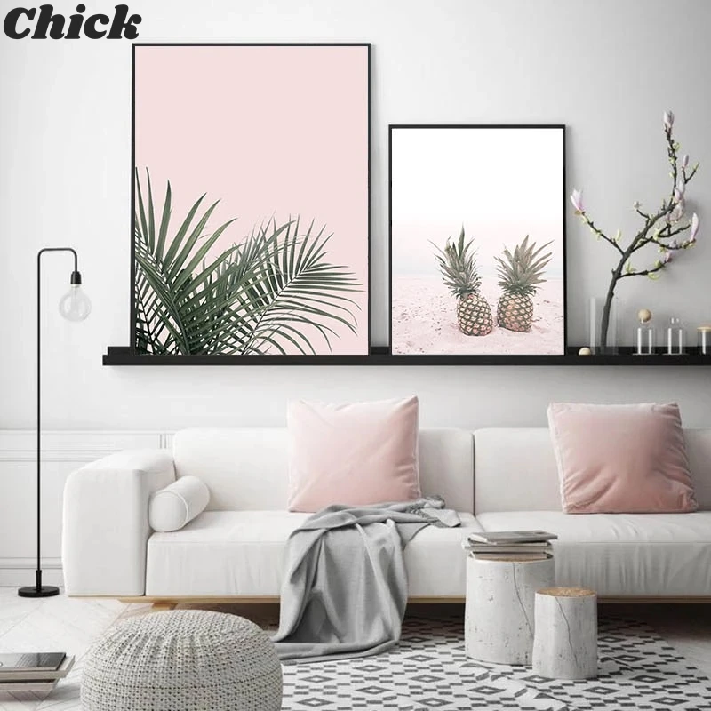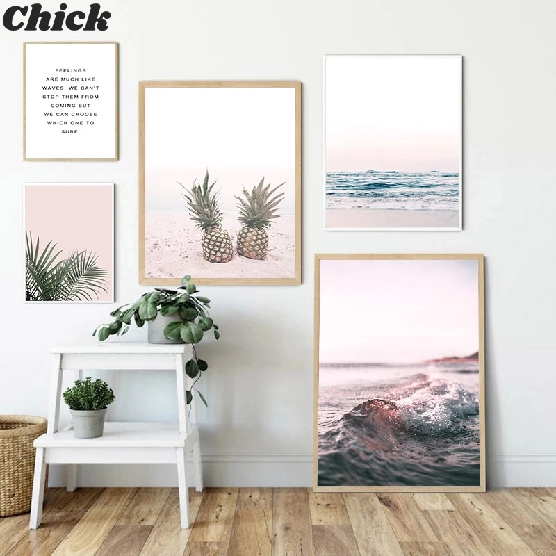 Настенная картина с изображением ананаса, океана, пляжа, искусство на холсте, картина в скандинавском стиле, современный декор для гостиной