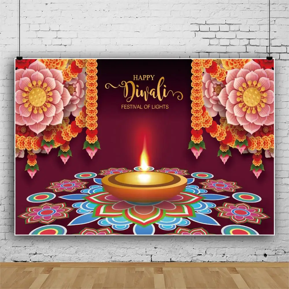 Laeacco Happy Diwali фестиваль огней блестящие свечи мандала цветок декор плакат фото фон фотография фон