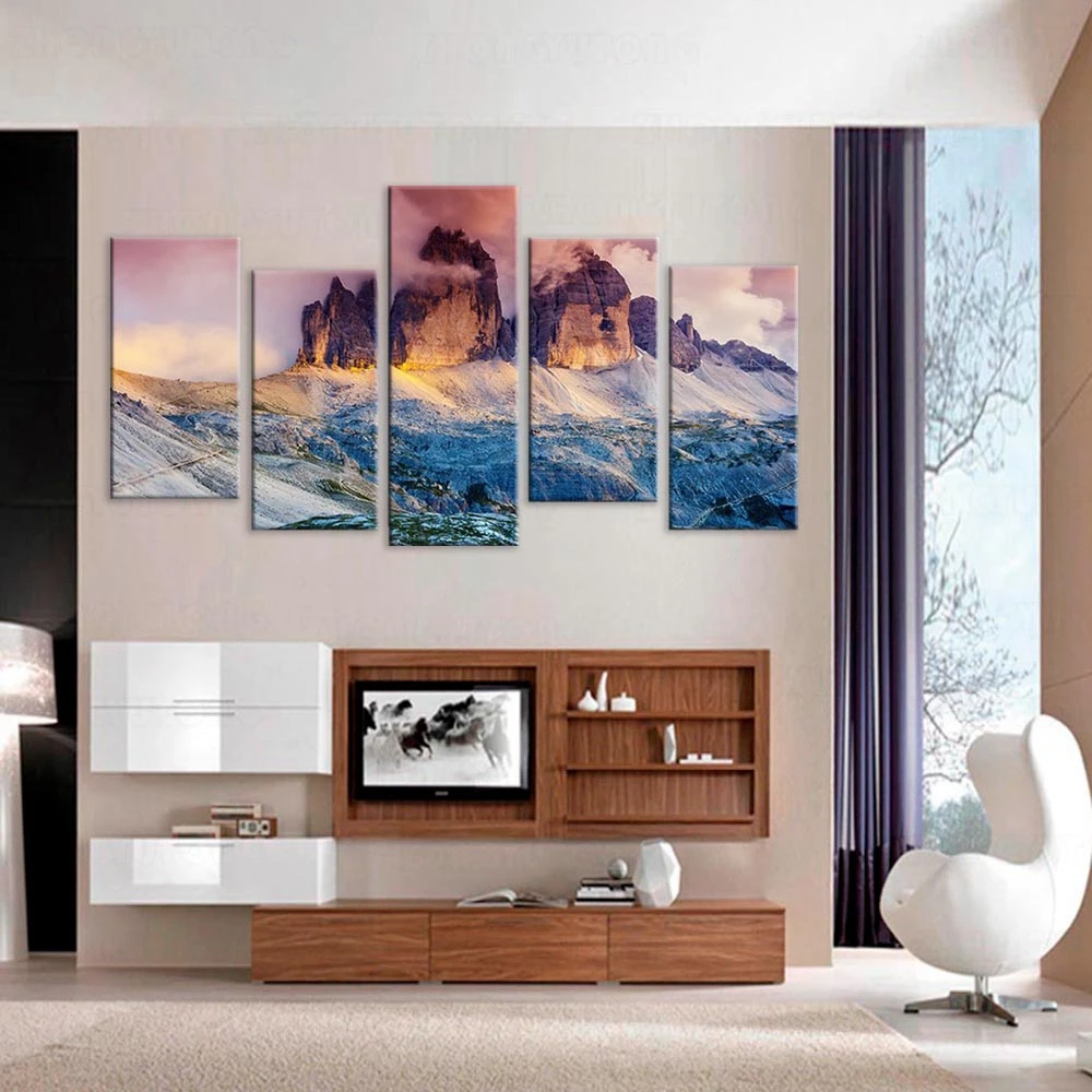 Модульные картины на холсте, 5 штук, светящийся туман, Австрия, доломиты, гора на закате, картина, домашний декор, печатный плакат, рамка