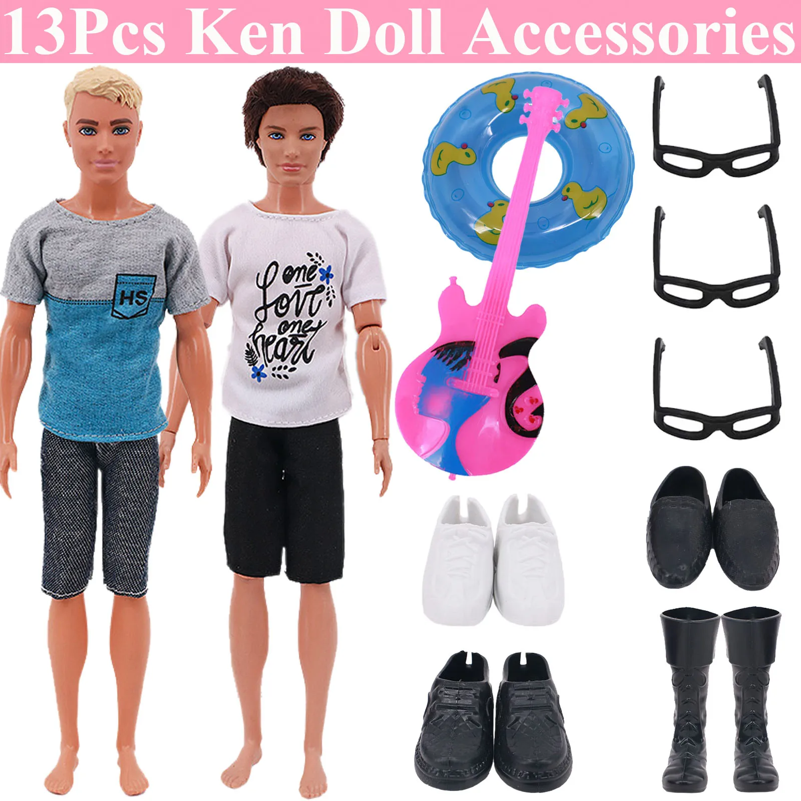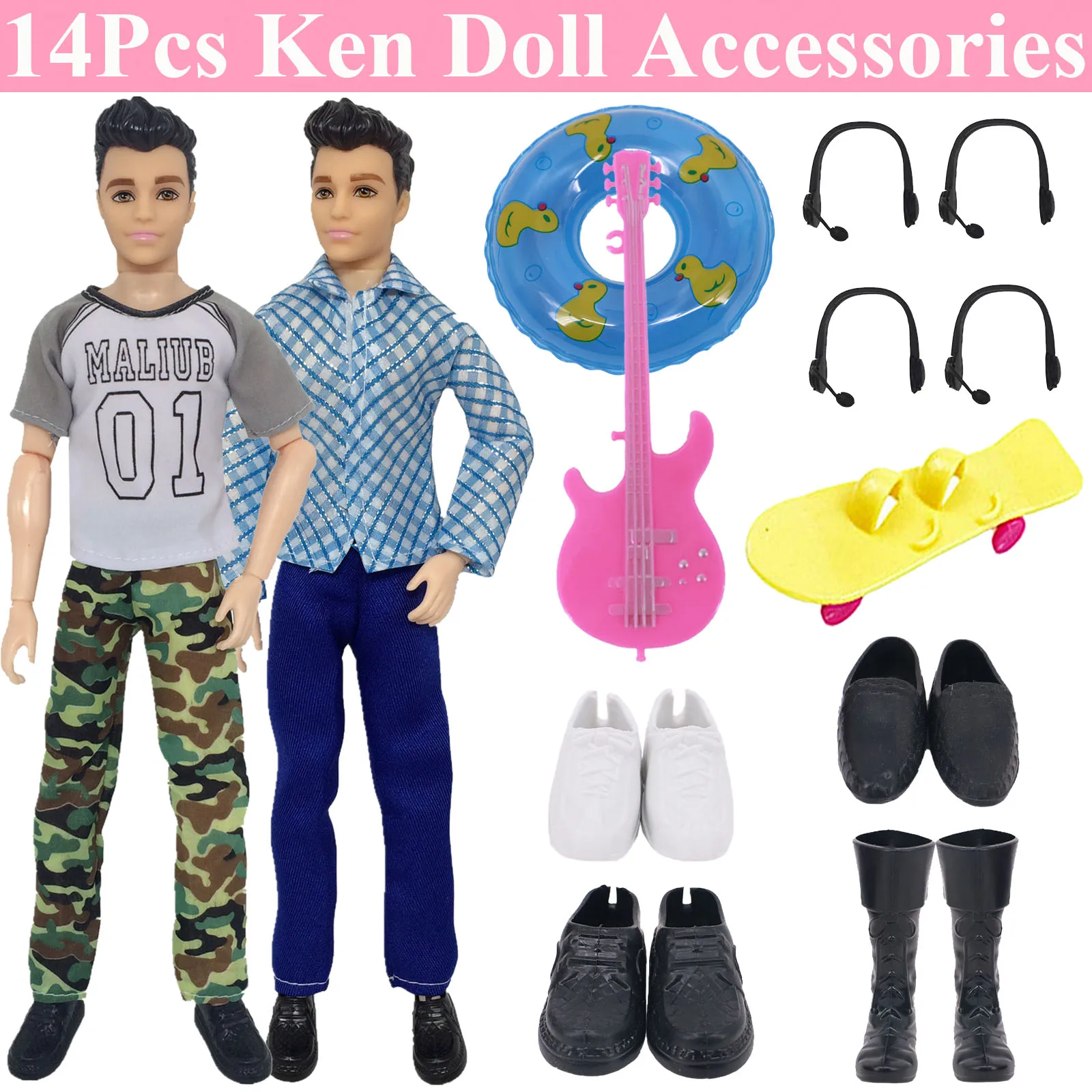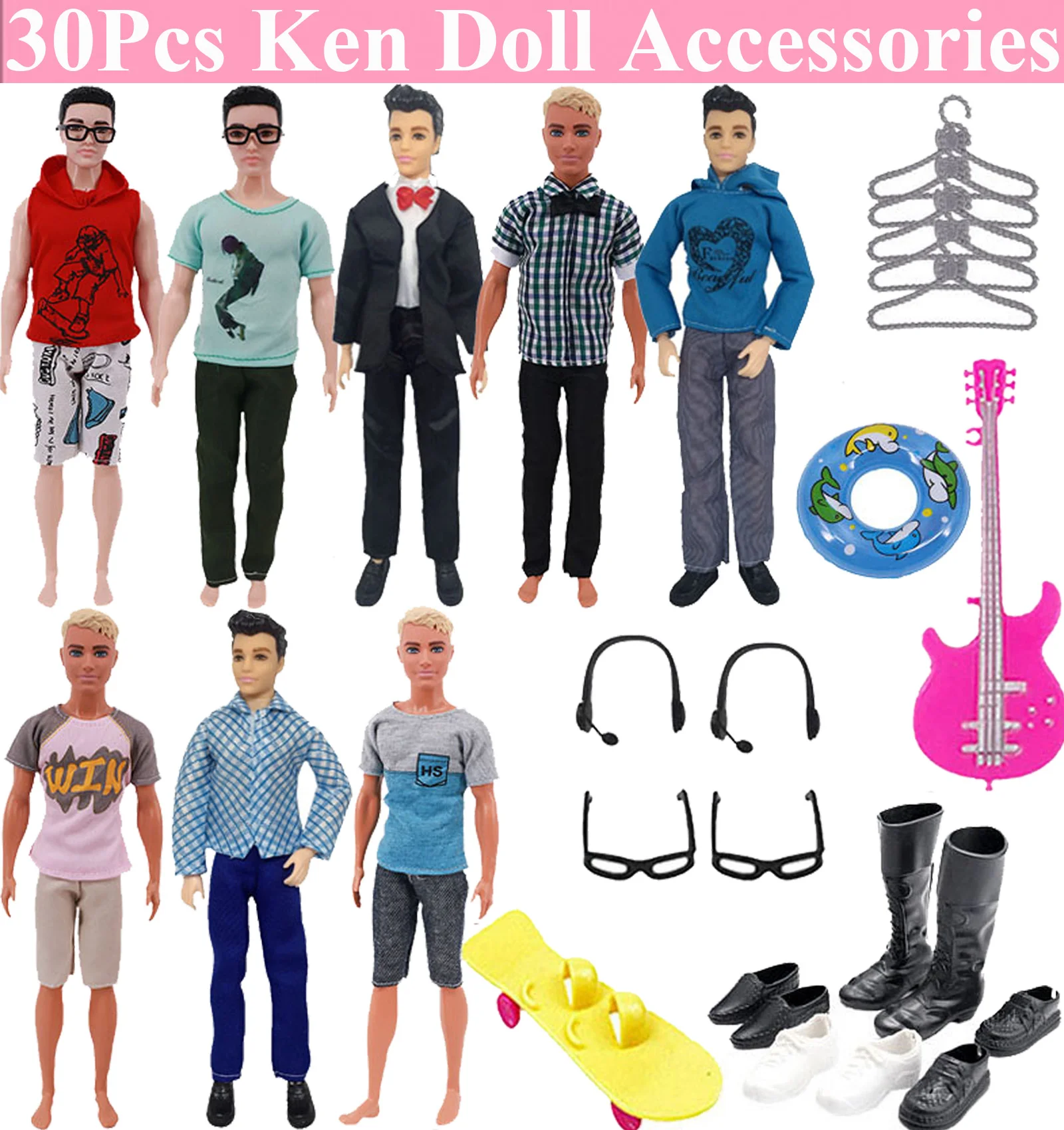 9 шт.компл. Одежда для кукол Ken Бесплатная доставка 2 * Одежда для кукол + 5 * очки + 1 * кукольная обувь + 1 * скейтборд для куклы Барби Ken Аксессуары для девочек