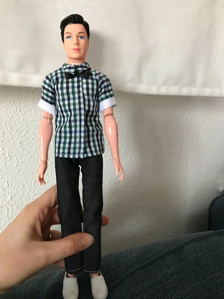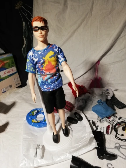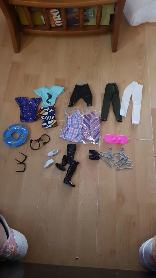 Доволен всей одеждой для куклы Кен, за исключением туфель, которые действительно маленькие! На самом деле, это видно на картинке, оригинальная обувь желтого цвета в том, что остальные прибыли! Определенно меньше! Подходит только для обуви! Чтобы улучшить размер обуви!