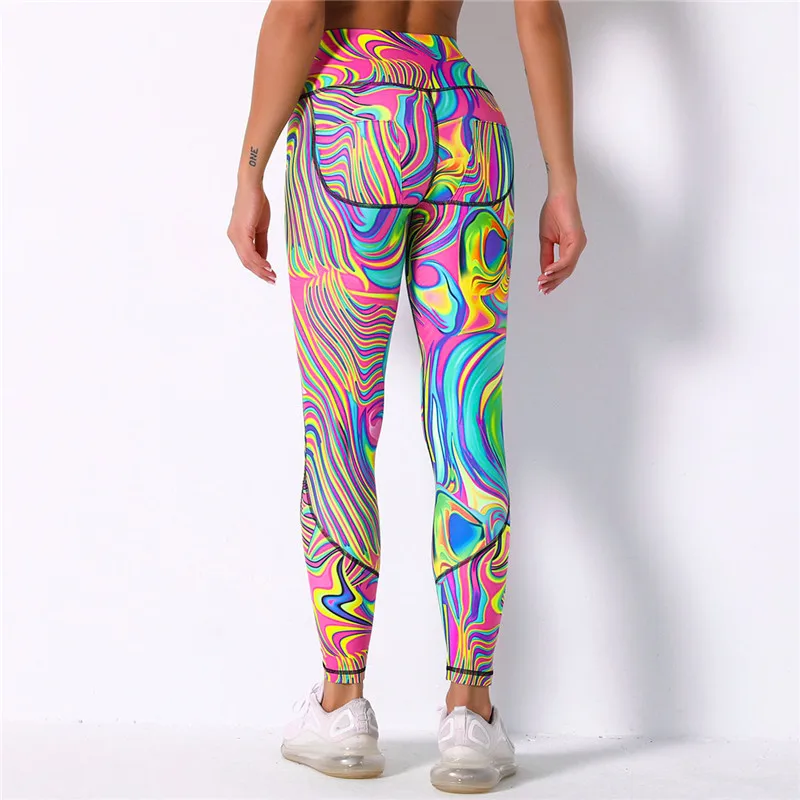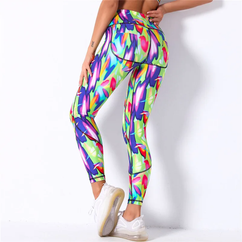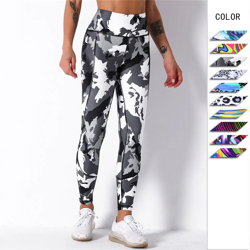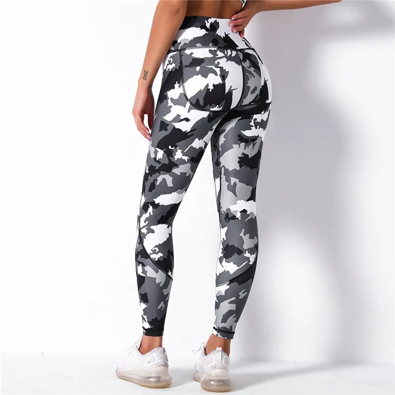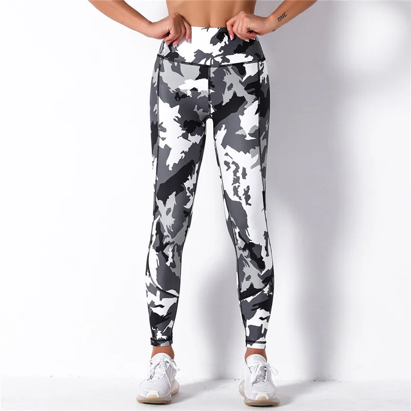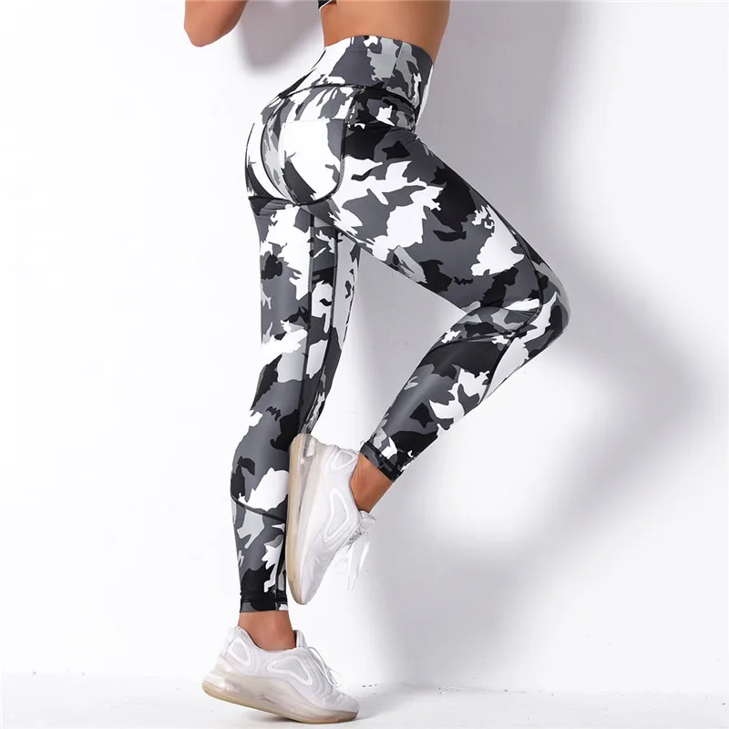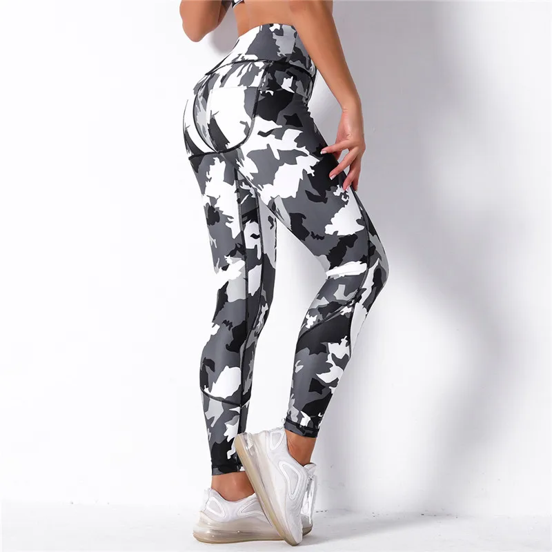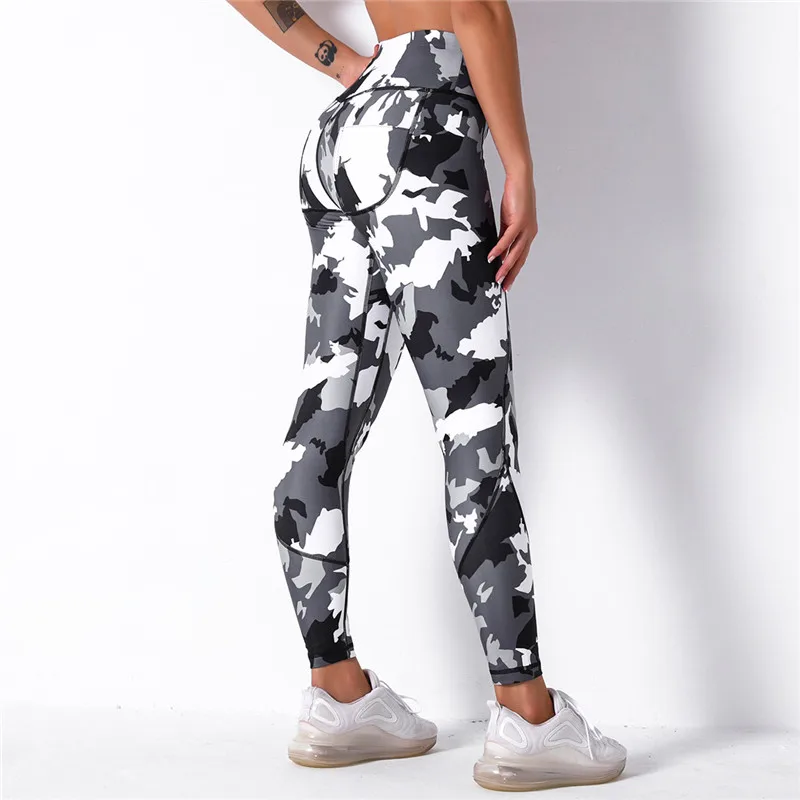 Леггинсы женские, камуфляжные, пуш-ап, с высокой талией, дышащие