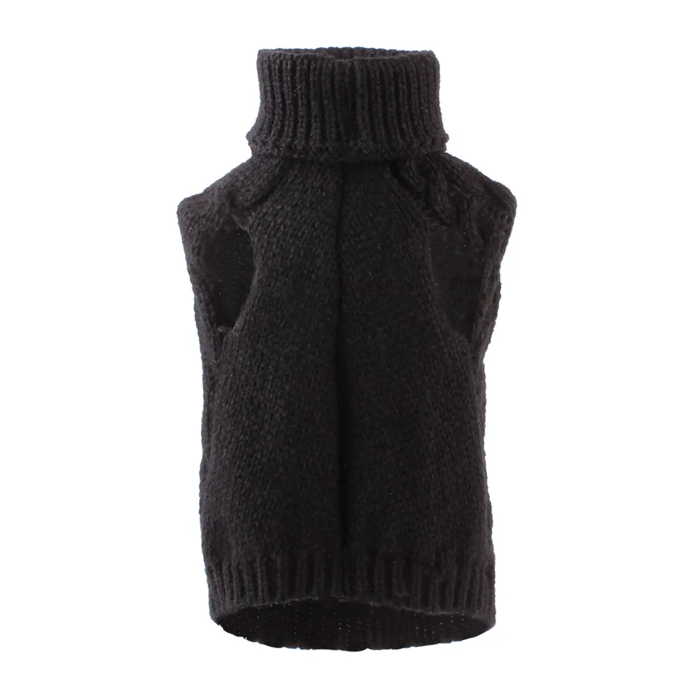 Свитера для домашних питомцев, зимняя одежда для домашних животных, однотонный трикотажный жакет без рукавов с круглым воротником, теплая мягкая куртка для домашних животных, одежда для собак