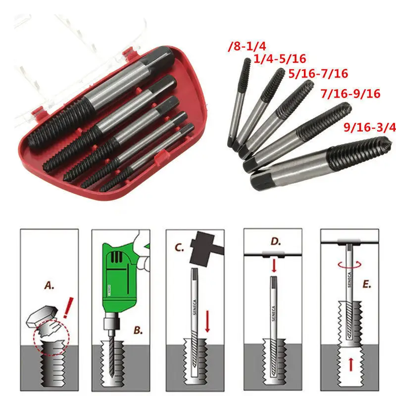 Набор направляющих сверл для извлечения сломанных болтов, 5 шт.