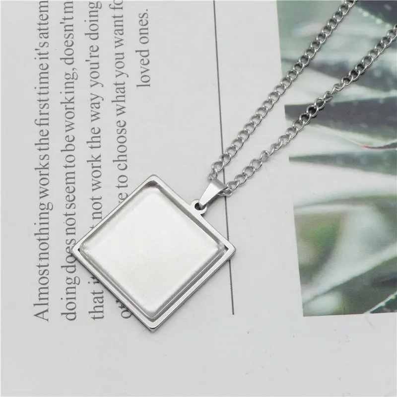 Характеристики продукта: квадратная оправа для кабошона, подвеска из нержавеющей стали, пустая оправа для подноса, аксессуар для изготовления ювелирные браслеты и кулоны