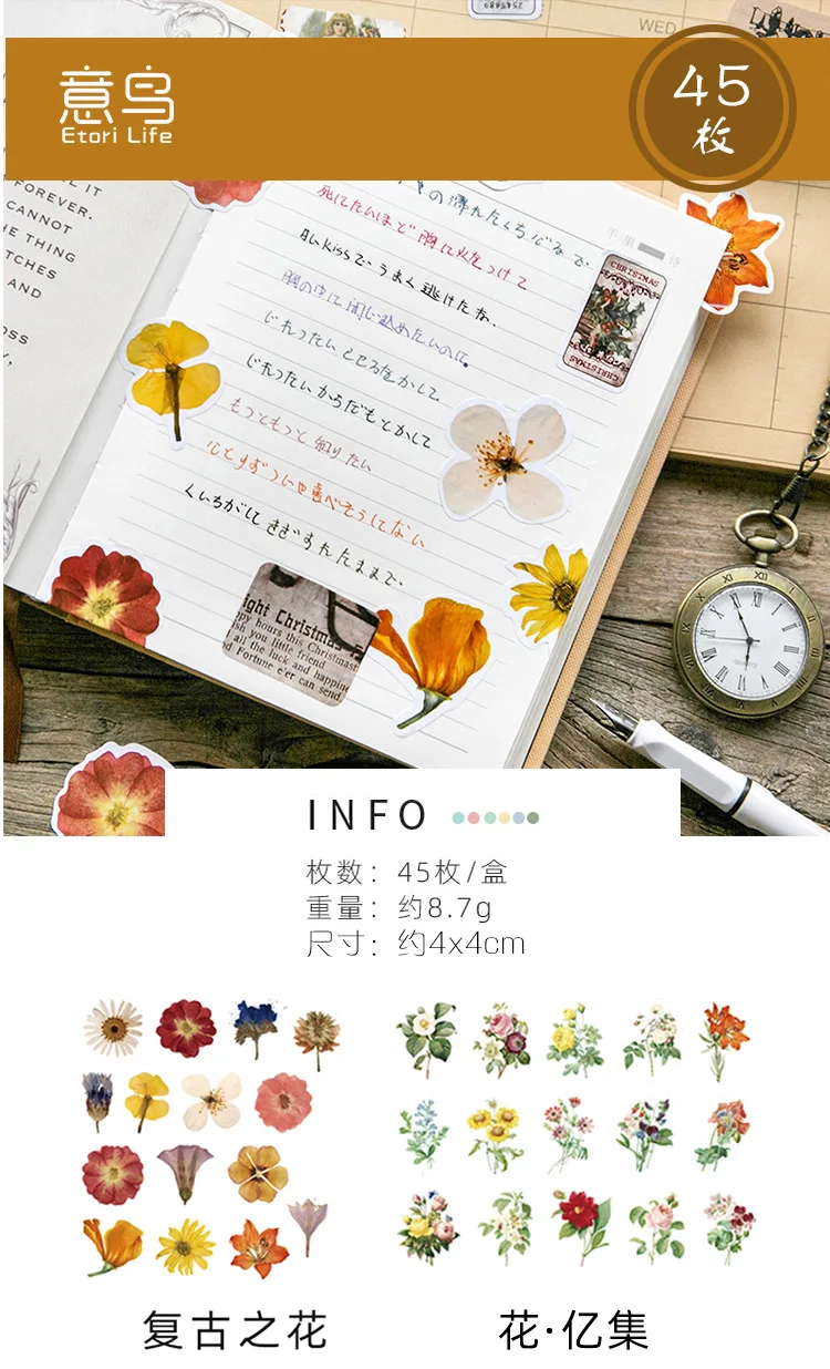 45 шт цветок Рождество винтажные канцелярские принадлежности стикеры планировщик для скрапбукинга дневник деко школьная милые офисные принадлежности наклейки