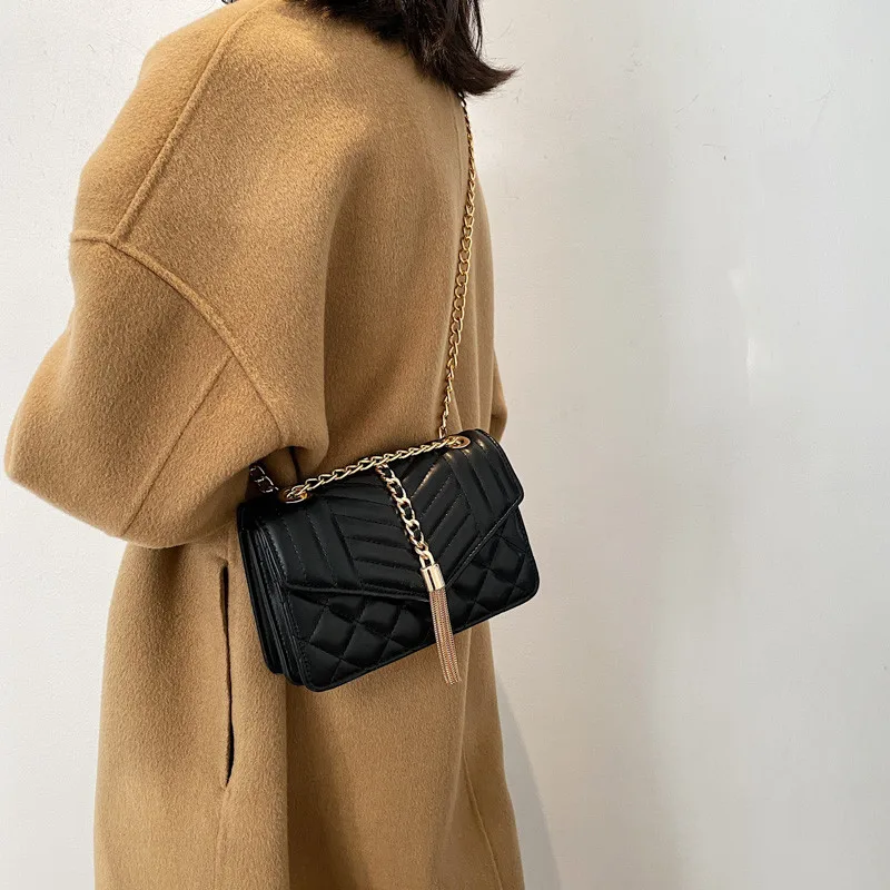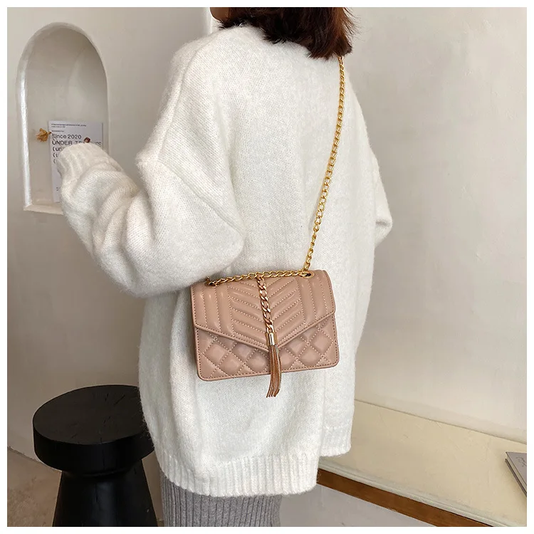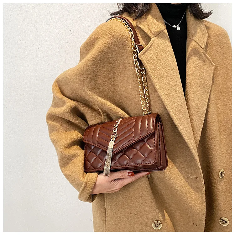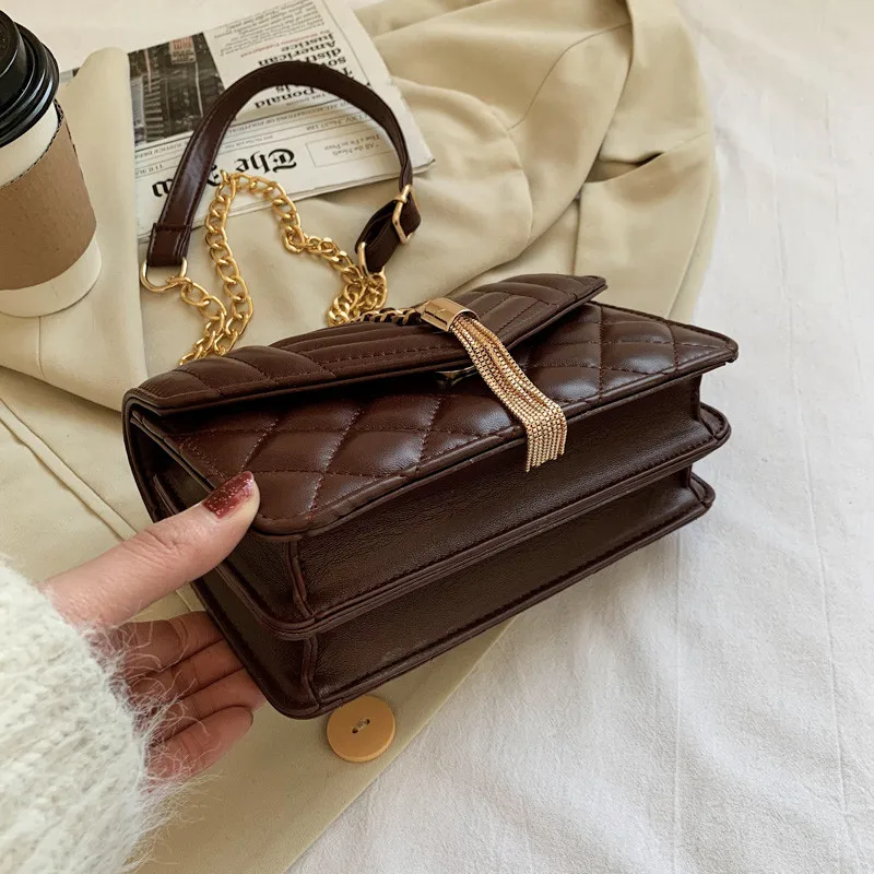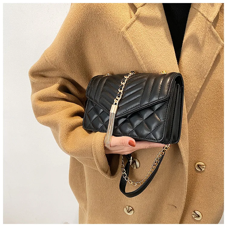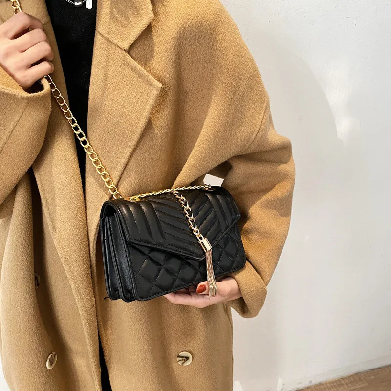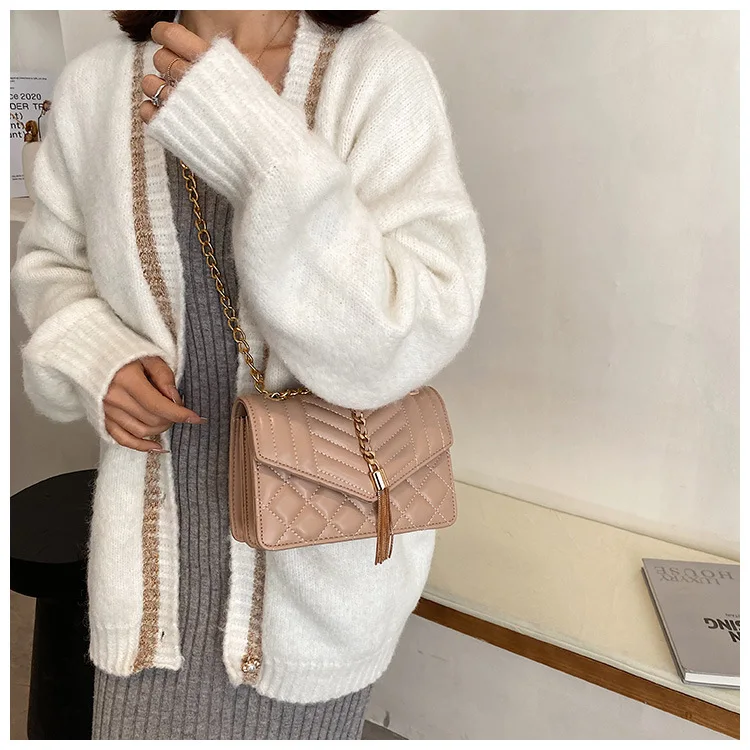 Сумка на плечо женская с бахромой, модный саквояж кросс-боди из экокожи, маленький чемоданчик с цепочками