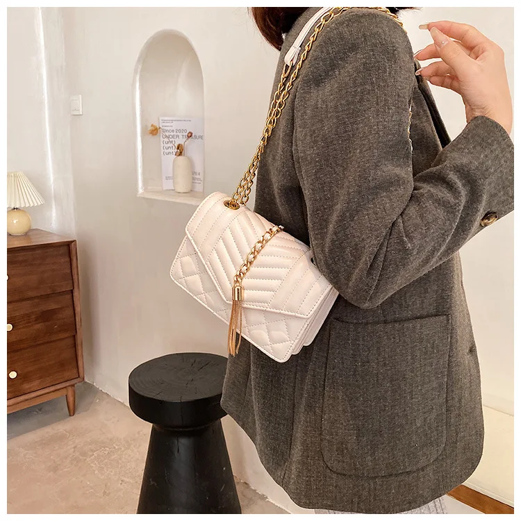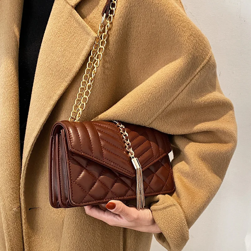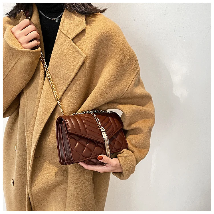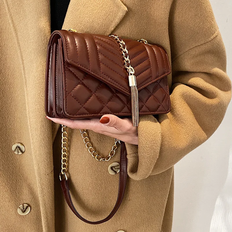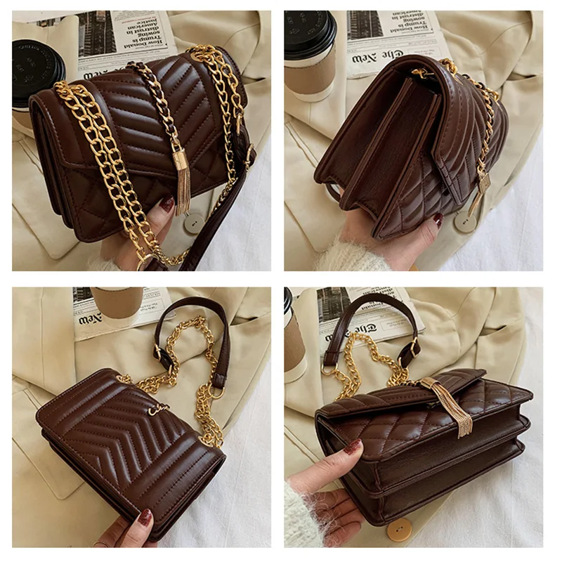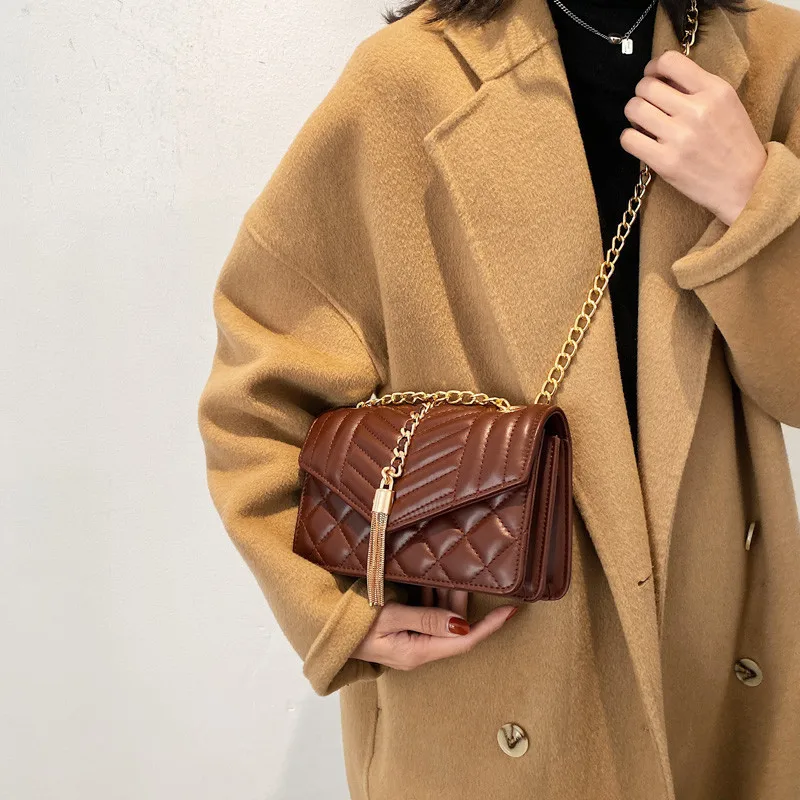 Сумка на плечо женская с бахромой, модный саквояж кросс-боди из экокожи, маленький чемоданчик с цепочками