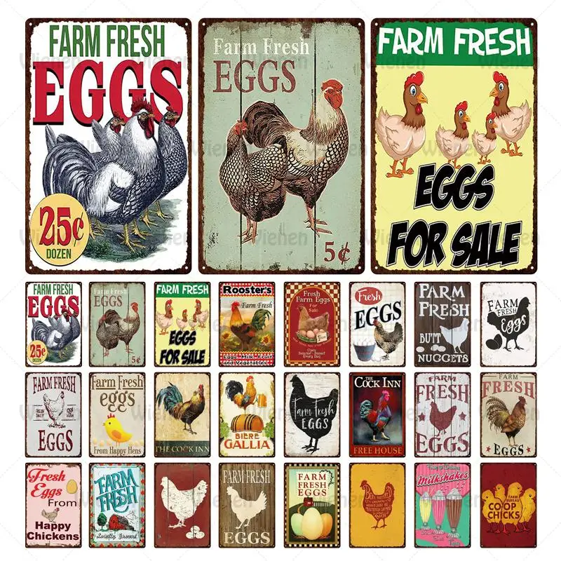 Свежие яйца-металлическая жестяная вывеска фермы магазин французское кафе молоко домашний декор для стен в винтажном стиле плакат Луженая листовая сталь счастливый цыпленок Ретро доска 20x30cm